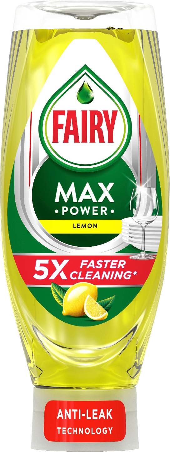 Fairy MaxPower Lemon -astianpesuaine on pakattu kätevään, ylösalaisin säilytettävään pulloon ilman kääntökorkkia, mikä tekee tiskaamisesta nopeampaa ja helpompaa.