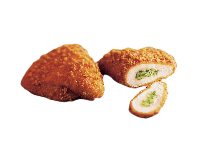 Broilerin rintafilé (54%), panerointi (25%; maissi, muunteltu VEHNÄTÄRKKELYS, vesi, sokeri, suola, OHRAMALLAS, emulgointiaine: auringonkukkalesitiini), täyte (11%; TUOREJUUSTO, vesi, herkkusienet, VOI, yrtit, sipuli, sitruunamehu, suola, valkosipuli, muunneltu perunatärkkelys, tärkkelys), vesi, rypsiöljy, VEHNÄJAUHO, jodioitu suola (suola, kaliumjodaatti), dekstroosi, mausteet (sisältää SELLERIÄ). Saattaa sisältää pieniä määriä kananmunaa, soijaa ja sinappia. Voimakassuolainen.