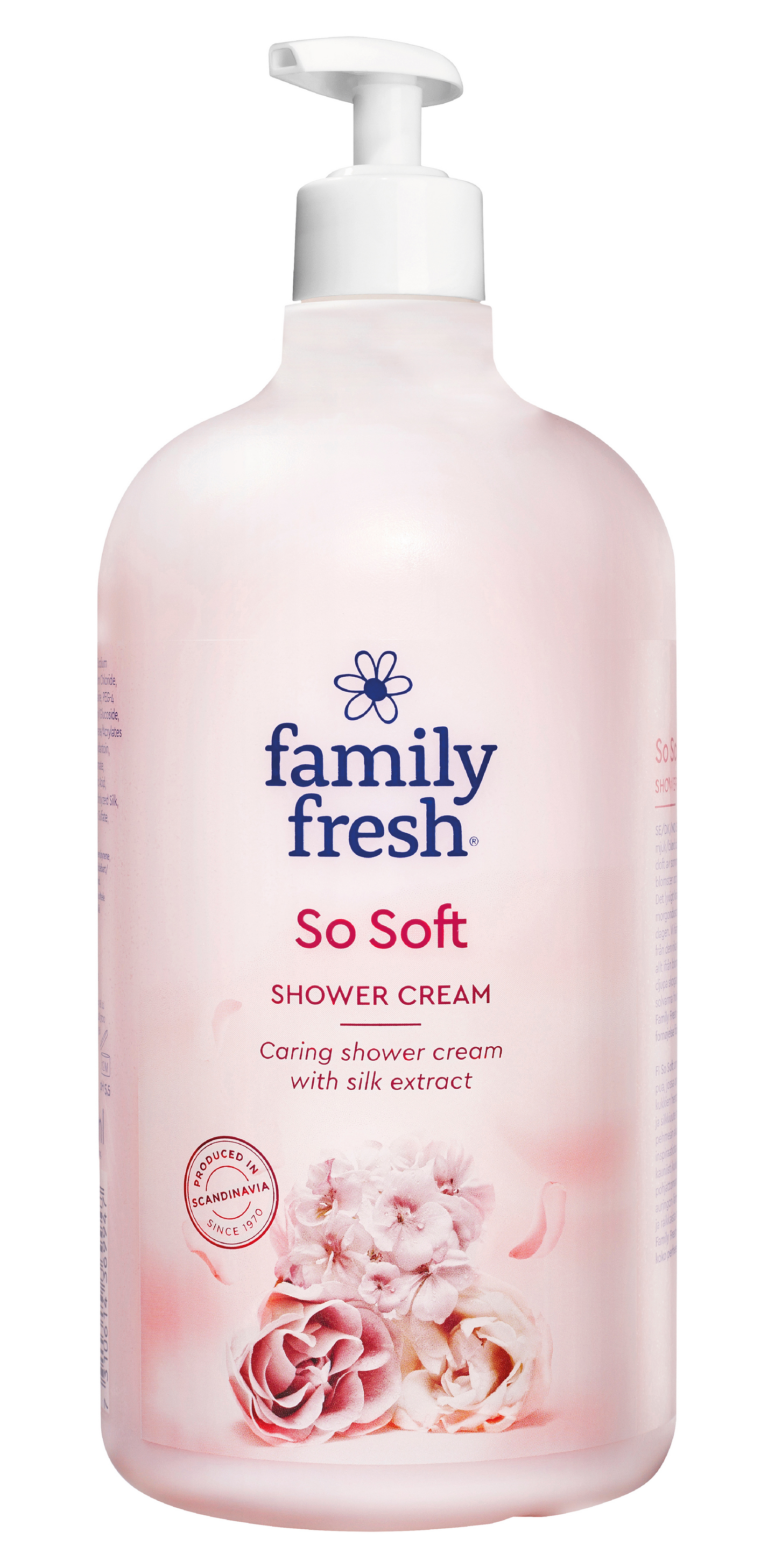 Family Fresh So Soft on silkinpehmeä, silkkiuutetta sisältävä suihkusaippua, jossa on kesäniityn kauneimpien kukkien hento tuoksu. Haemme inspiraatiota ainutlaatuisesta luonnosta; kauniisti kukkivista kedoista ja pohjattoman lumoavasta metsästä, auringon lämmittämistä hedelmistä ja raikkaista marjoista. Puhdasta iloa koko perheelle. Riittoisa pumppupakkaus.