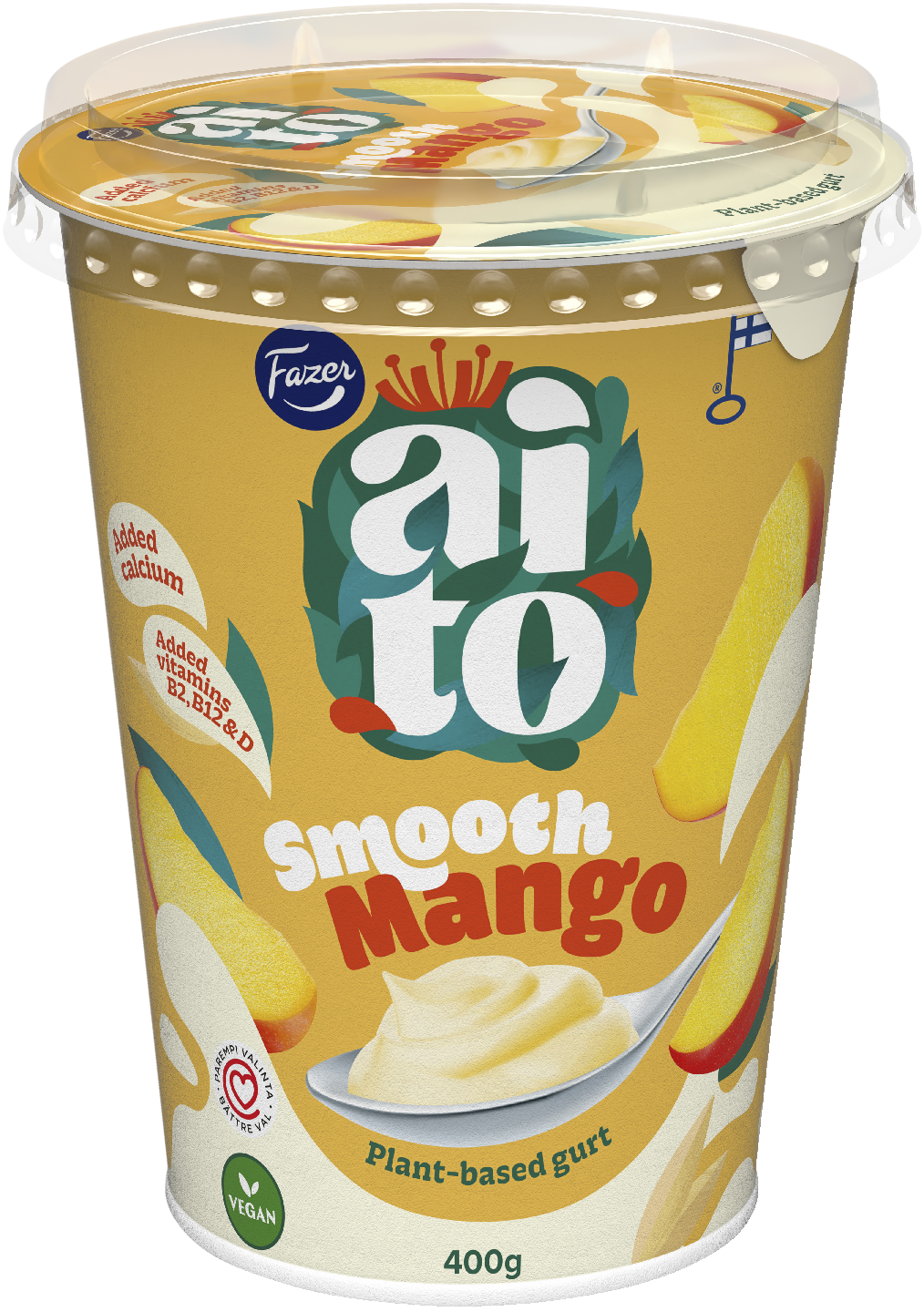 VegaaninenFazer Aito Kasvipohjainen gurtti Mango on trooppinen herkku, jonka täyteläinen ja samettinen koostumus yhdistyy raikkaaseen ja pehmeään mangon makuun. Se on täydennetty kalsiumilla sekä B2-, B12- ja D-vitamiineilla – maukas ja ravitseva valinta mihin tahansa hetkeen.