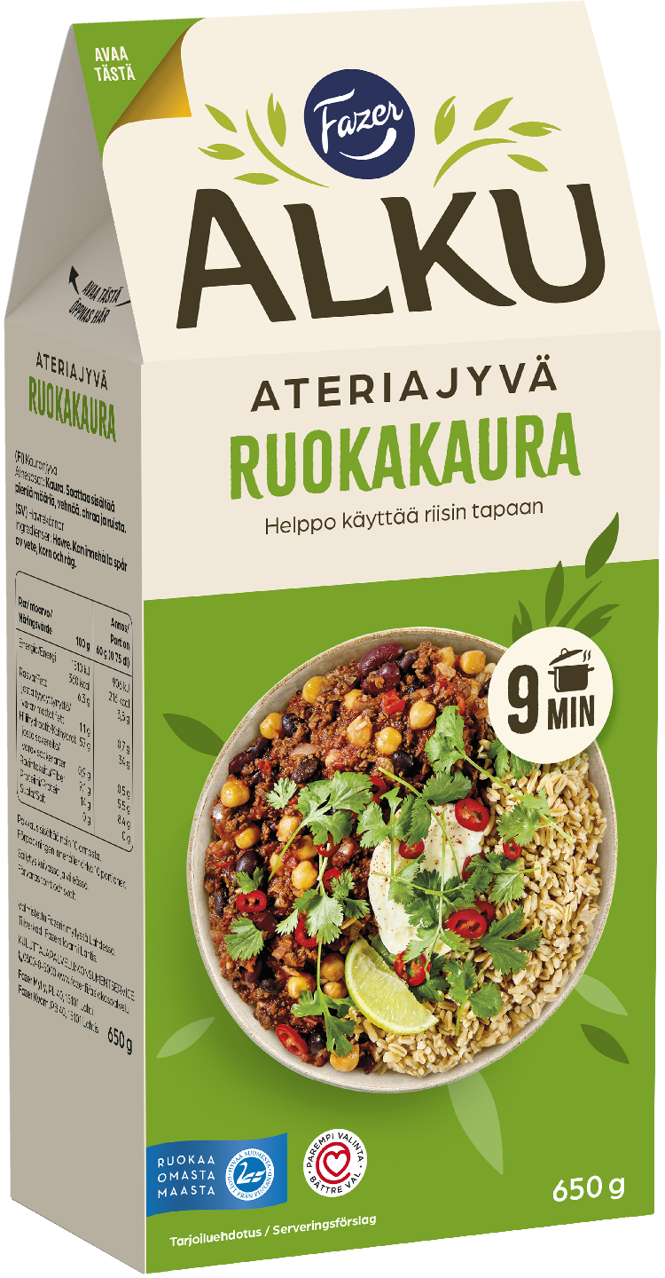 VegaaninenRuokakaura on nopea, herkullinen ja runsaskuituinen lisuke, jota voit käyttää riisin tapaan kaikilla päivän aterioilla. Kokeile kaurattoon, piirakan täytteeksi tai salaatissa. Valmistettu suomalaisesta viljasta Fazerin myllyssä Lahdessa. Alku hyviin hetkiin!