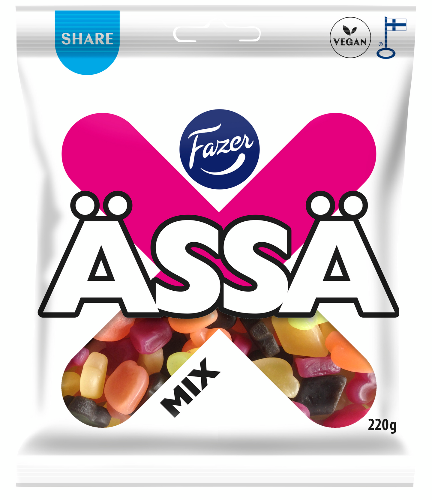 VegaaninenÄssä Mix vai Missä X? Suomalaisten kestosuosikki Ässä karkkipussi yhdistää parhaimmat hedelmämaut ja tutun Ässä-salmiakkilakritsin. Löydä suosikkiyhdistelmäsi – Ässä Mixin ananas-persikka-, päärynä-, appelsiini- ja mustaherukka-maut hurmaavat niin yksin kuin yhdessä salmiakin kanssa. Ässä-perheen esikoispussi sopii tilanteeseen kuin tilanteeseen, nautittuna yksin tai jaettuna kavereiden kanssa.