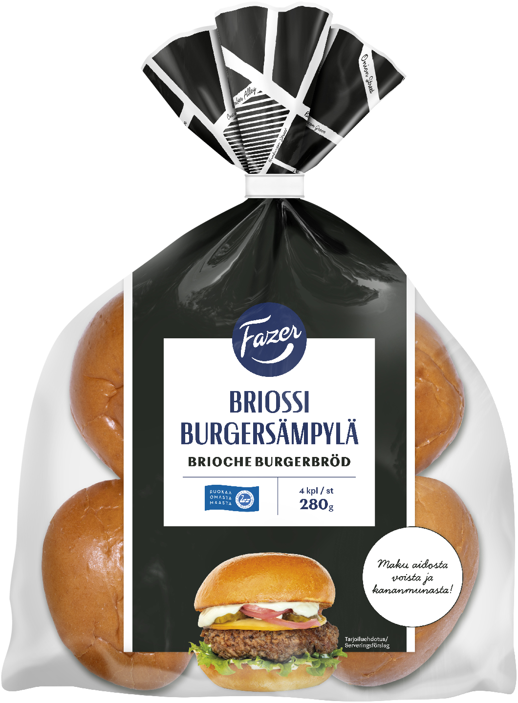LaktoositonMaukkaan Fazer Briossi Burgersämpylän pehmeä mutta tiivis rakenne on ihanteellinen hampurilaisten valmistamiseen. Aidon briossin herkullisen maun salaisuutena on leivonnassa käytetty voi ja kananmuna. Leivottu Fazerin leipomolla Lahdessa.