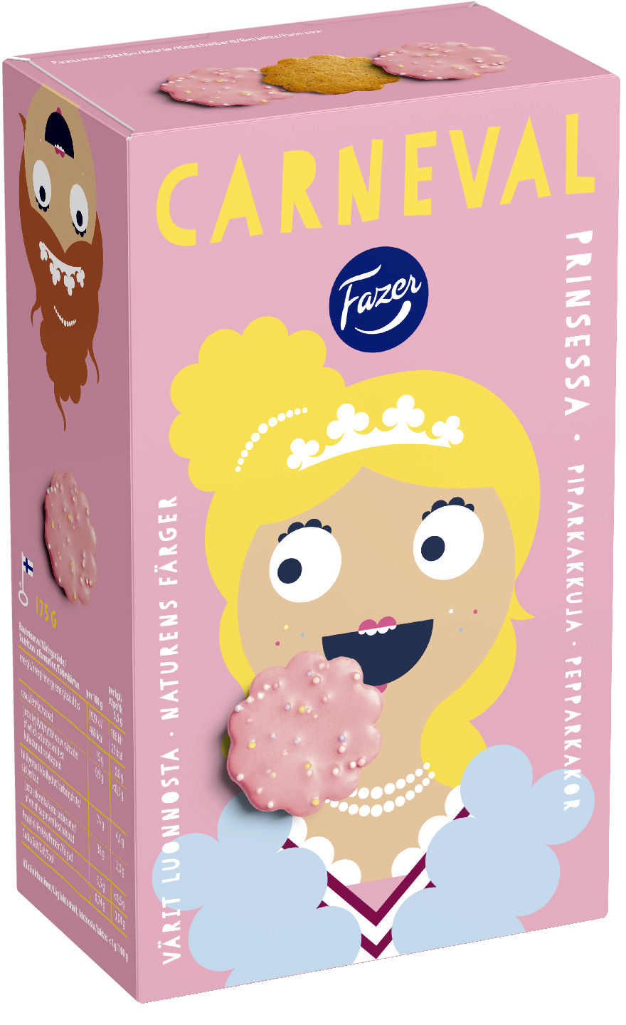 Prinsessojen ja prinssien juhlapäivän takuuvarma suosikki on Fazer Carneval Prinsessa -keksit. Herkullisia pieniä piparkakkuja koristaa ihana, vaaleanpunainen kuorrutus, jonka kaunis väri on peräisin luonnosta. Fazer Carneval Prinsessa -keksit ovat täydellinen tarjottava lastenjuhliin tai satumaisiin herkkuhetkiin.