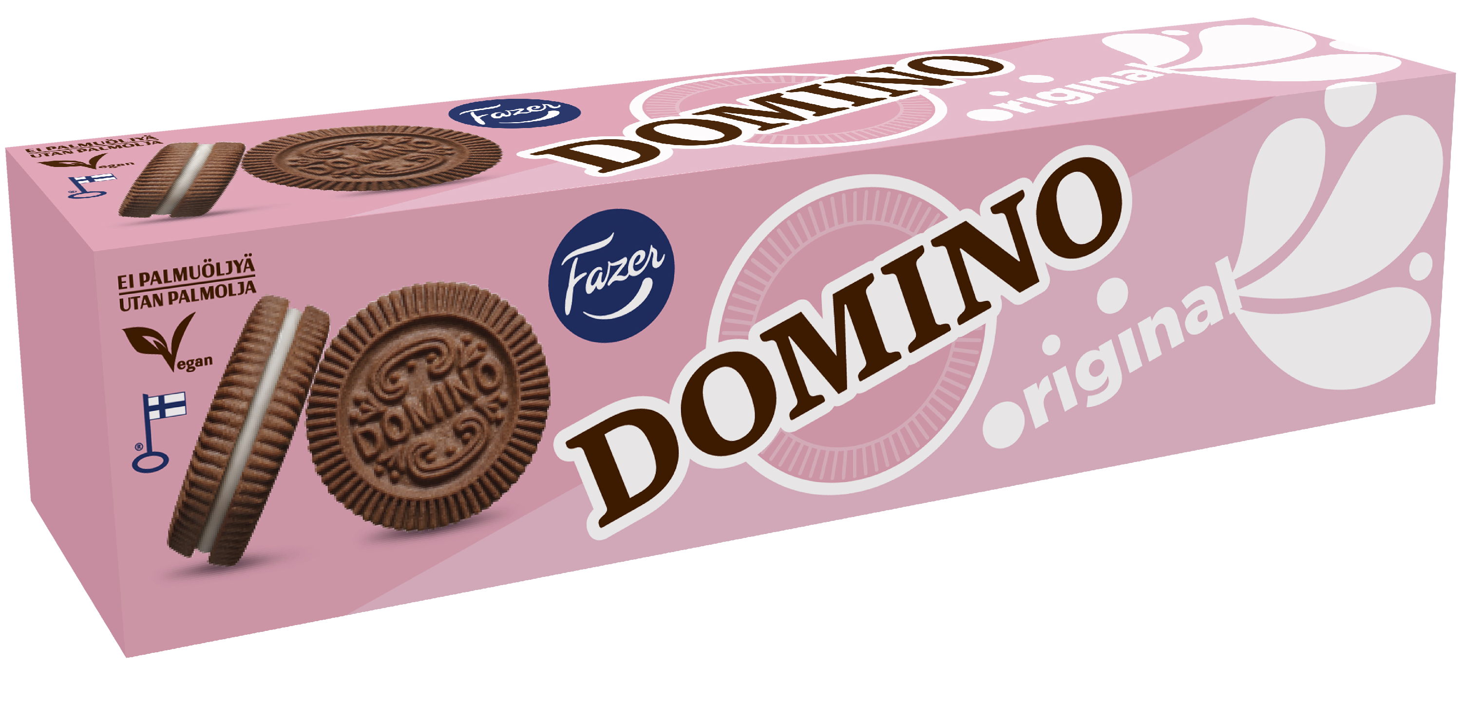 VegaaninenAito ja alkuperäinen Domino Original on täytekeksin klassikkomaku, jossa tumma kaakaokeksi ja valkoinen vaniljatäyte muodostavat ainutlaatuisen makuelämyksen. Mikä parasta, keksi leivotaan ilman palmuöljyä. Noudatamme kaakaonhankinnassamme Fazerin kaakaovisiota. Lue lisää www.fazercocoavision.com. Domino keksit maistuvat juhlissa ja kahvipöydässä. Sopii myös vegaaneille.