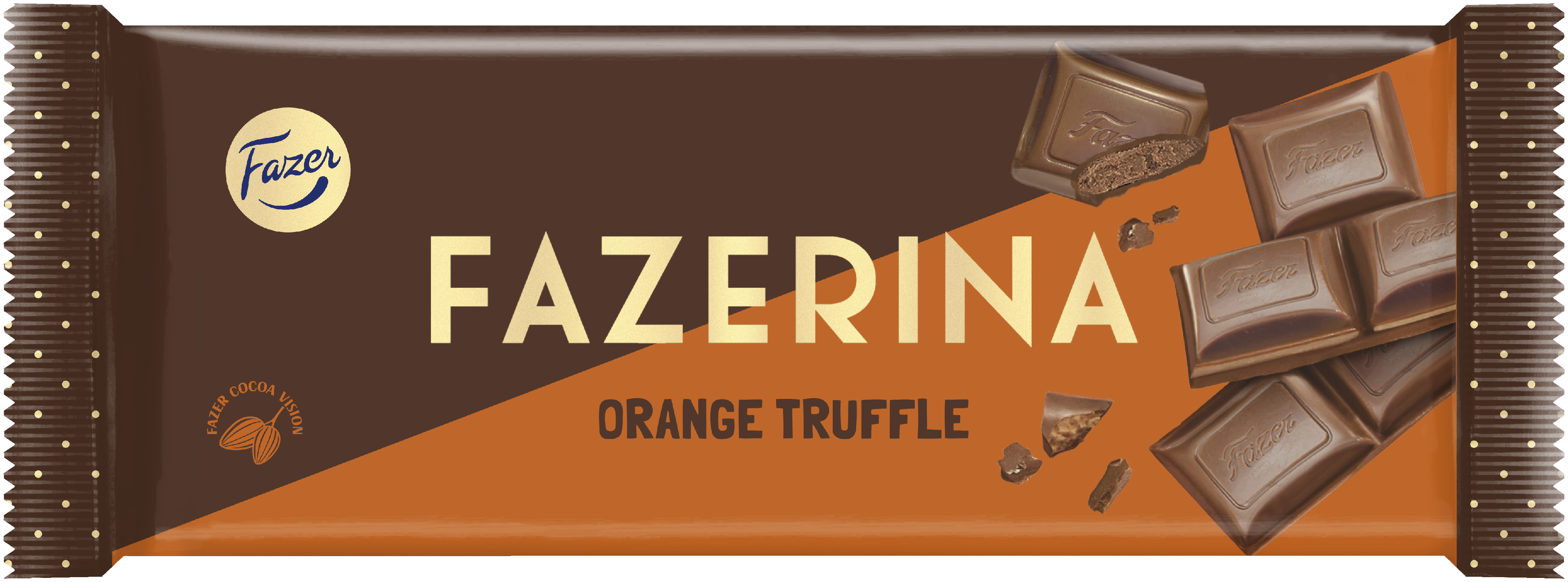 Fazerina on todellinen täytesuklaaklassikko, joka on hurmannut jo vuodesta 1953. Appelsiinitryffelitäyte ja hienostunut maitosuklaa vievät matkalle makeimpiin muistoihin. Noudatamme kaakaonhankinnassamme Fazerin kaakaovisiota. Lue lisää www.fazercocoavision.com. Fazerina-suklaalevystä riittää suklaailoa myös jaettavaksi ystävien kanssa.