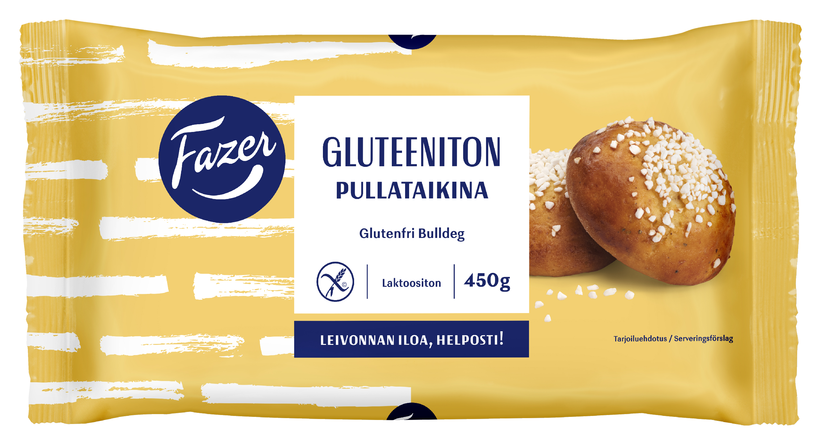 vesi, KANANMUNA, sokeri, muunnettu tärkkelys (tapioka), riisijauho, laktoositon VOI, maissijauho, perunahiutale [peruna, emulgointiaine (E471), stabilointiaine (E450)], laktoositon MAITOJUOMA, hiiva, aromit (vanilja, vanilliini), kardemumma, nostatusaineet (E450, E500), jodioitu suola, emulgointiaine (E475, E471), sakeuttamisaine (E415), kasvikuidut (psyllium, peruna, bambu). SAATTAA SISÄLTÄÄ PIENIÄ MÄÄRIÄ GLUTEENITONTA KAURAA, SINAPINSIEMENIÄ JA SEESAMINSIEMENIÄ.