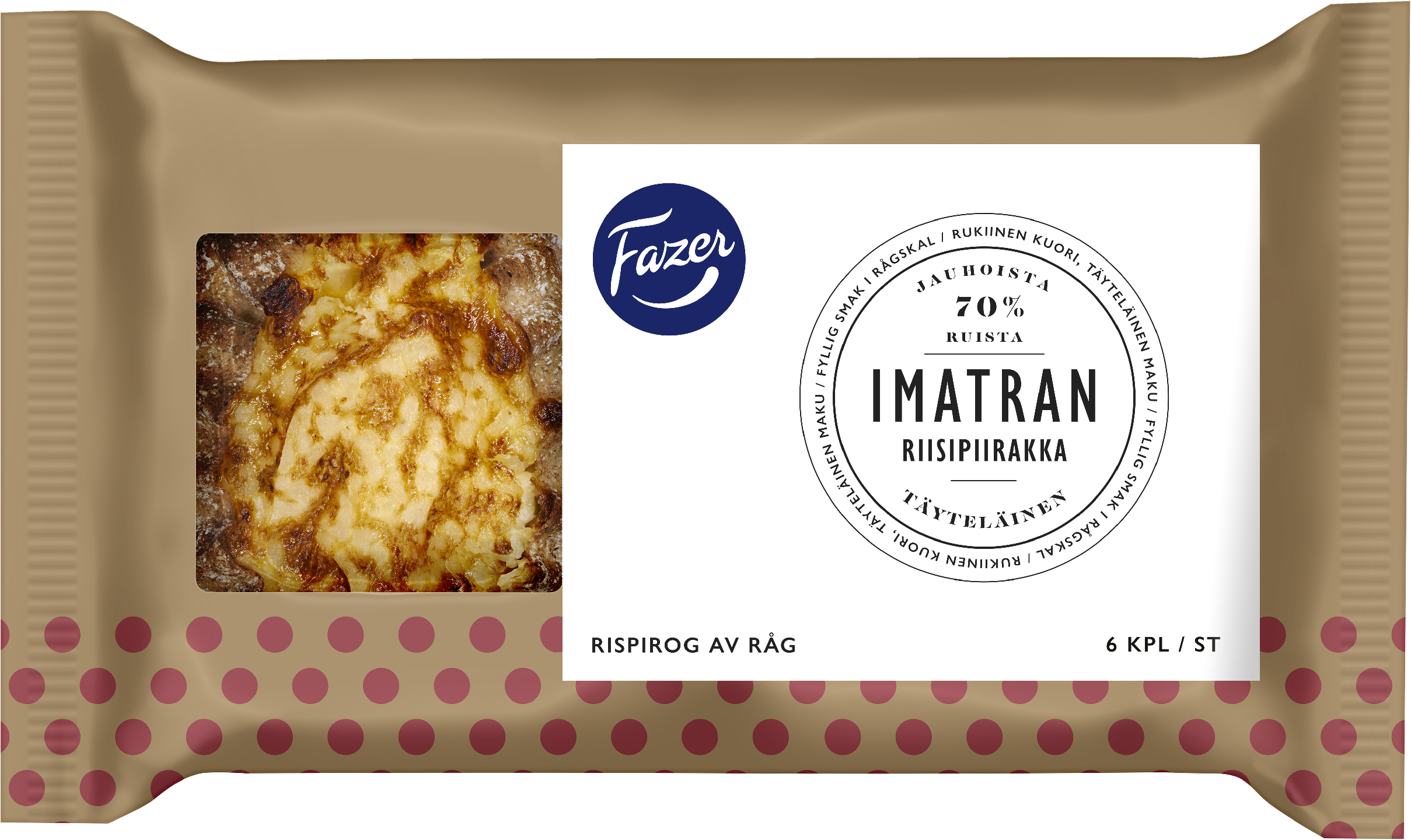 LaktoositonFazer Imatran Riisipiirakan herkullisen maun salaisuus on ohut taikinajuureen leivottu kuori ja täyteläisen samettinen riisipuuro. Riisipiirakka on helppo eväs matkalle, kotiin tai juhlapöytään.