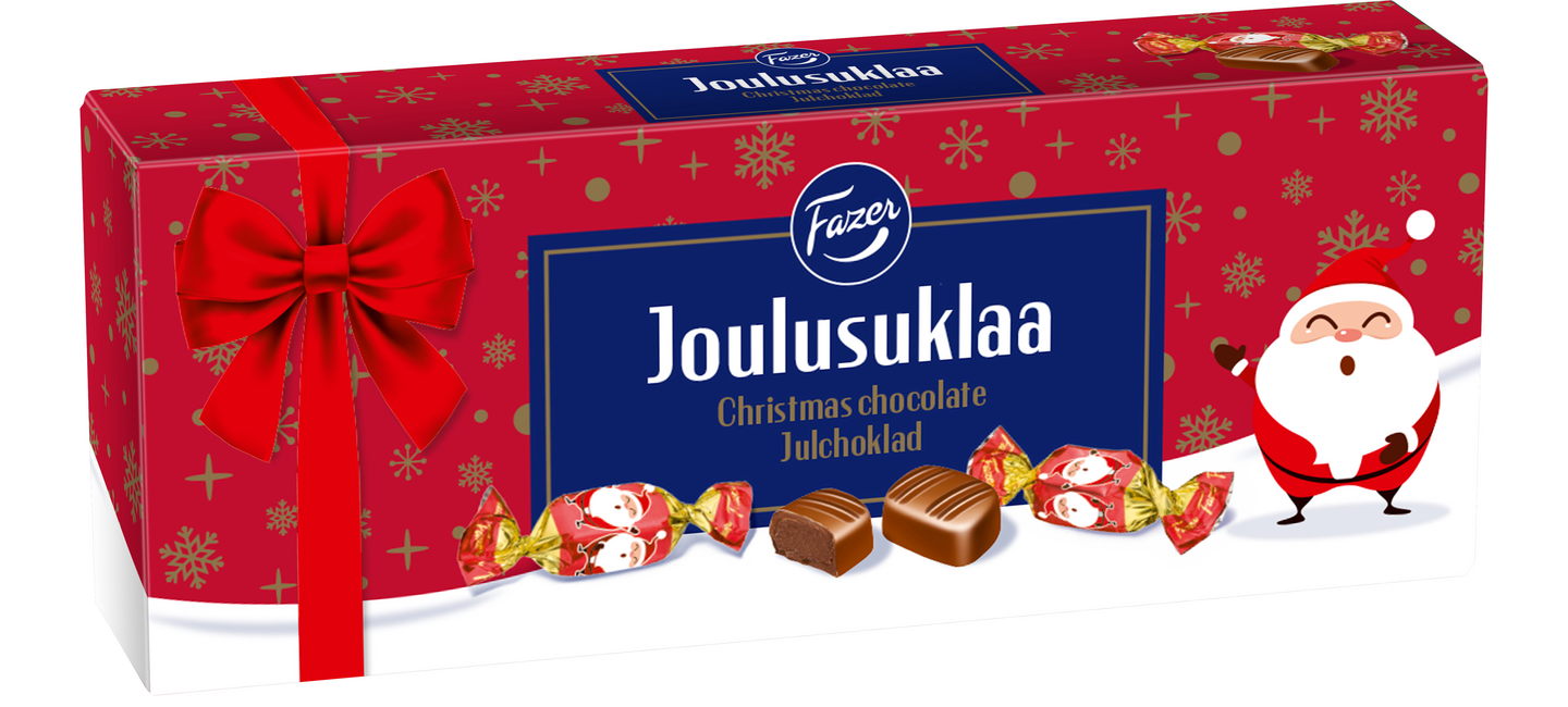 sokeri, kasvirasva (palmu), kaakaovoi, täysMAITOjauhe, kaakaomassa, rasvaton MAITOjauhe, kirnuMAITOjauhe, VEHNÄjauho, vähärasvainen kaakaojauhe, riisi, emulgointiaine (SOIJAlesitiini), glukoosi-fruktoosisiirappi, mausteet (kaneli, neilikka, inkivääri), suola, aromit, mallasuute (OHRASTA). SAATTAA SISÄLTÄÄ PÄHKINÄÄ, MANTELIA JA MUUTA GLUTEENIA SISÄLTÄVÄÄ VILJAA. Maitosuklaassa vähintään 30% kaakaota.