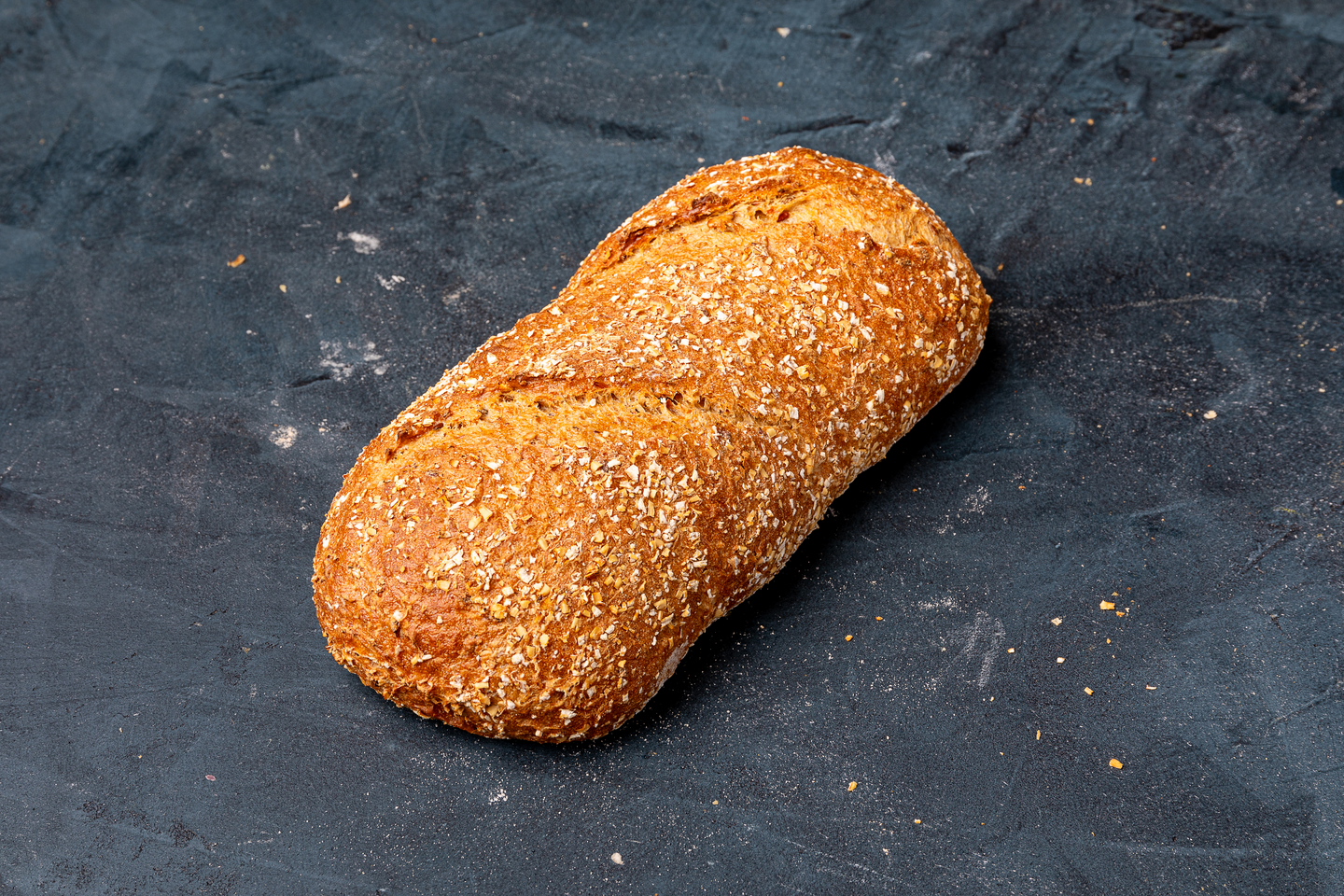 VEHNÄJAUHO, vesi, TÄYSJYVÄRUISJAUHO, mallastettu RUISHIUTALE, KAURANJYVÄ, pellavansiemen, jodioitu suola (1,5 %), auringonkukansiemenet, KAURALESE, rapsiöljy, OHRAMALLASJAUHO, hiiva. Ruista 9 % leivästä ja 15 % leivän viljasta. Voimakassuolainen. Valmiit tuotteet saattavat sisältää myös muita allergeenejä, jotka ovat peräisin muista paistopisteessä käsitellyistä tuotteista. SAATTAA SISÄLTÄÄ PIENIÄ MÄÄRIÄ SOIJAA.