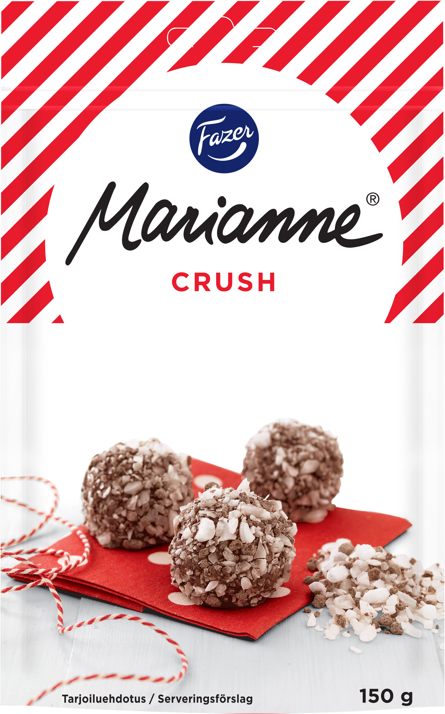 Punavalkoinen klassikko löysi tiensä keittiöön! Marianne Crush -piparminttusuklaarouhe koristelee kakut ja johdattaa leipurin suklaanystävän sydämeen.