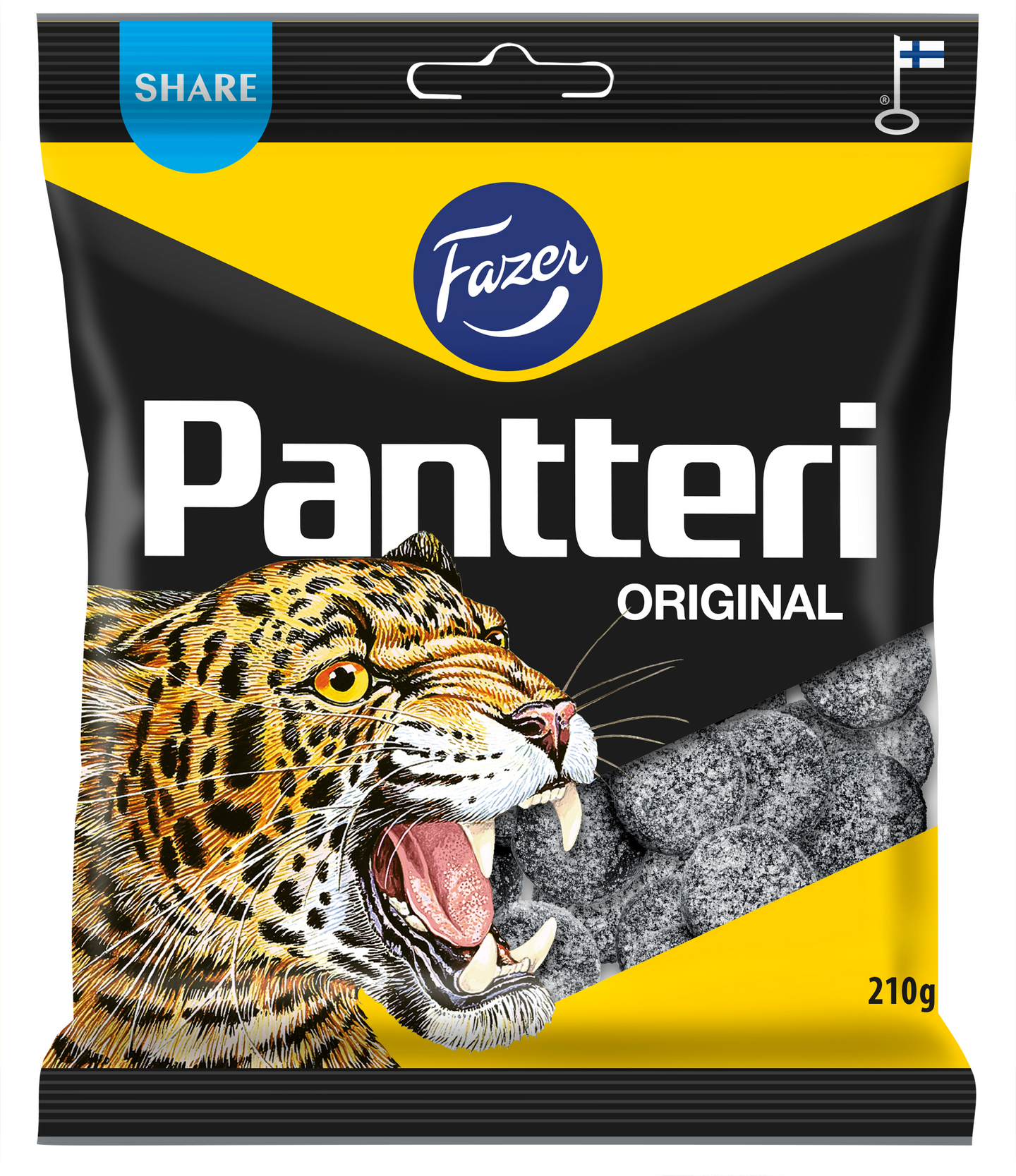 Pantteri on makeansuolainen salmiakki, joka tuo kissaeläimen vaistosi esiin. Jo yli 50 vuoden ikään päässyt Pantteri-mentholsalmiakki on Fazerin ehdoton makeisklassikko, jota vuodet eivät ole kesyttäneet. Salmiakit ovat laktoosittomia. Taltuta makeannälkäsi Pantterilla tai jaa karkkipussi kavereiden kanssa.