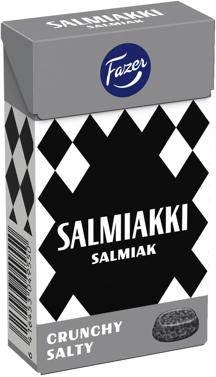 Fazer Salmiakki on klassikko, joka ei juuri esittelyjä kaipaa! Aito ja alkuperäinen suomalainen salmiakki on osa kulttuuriperintöämme. Fazer Salmiakki Crunchy Salty -salmiakkipastilleissa yhdistyy ihana sitkeä sisus ja rapea ulkokuori. Aski kulkee kätevästi mukanasi kaikkiin tilanteisiin, jotka vaativat salmiakkia.