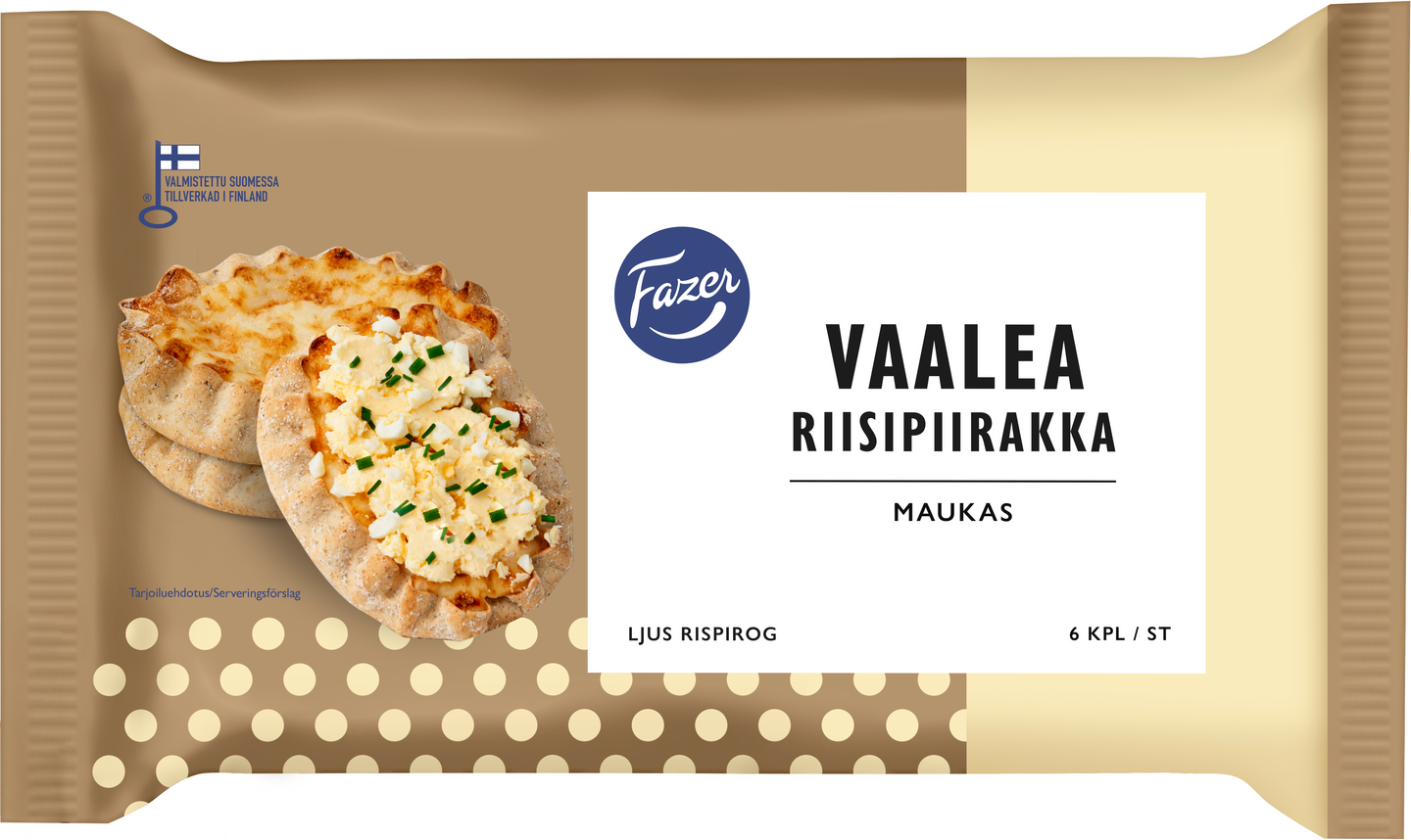 LaktoositonFazer Vaalea Riisipiirakka leivotaan maukkaaseen vehnäiseen kuoreen ja täytetään perinteisellä riisipuurolla. Piirakka maistuu parhaimmalta lämmitettynä. Lämmitä ilman pakkausta hetki leivinpaahtimessa, mikroaaltouunissa (750 W) n. 40 sek tai uunissa 200 °C n. 5 min.
