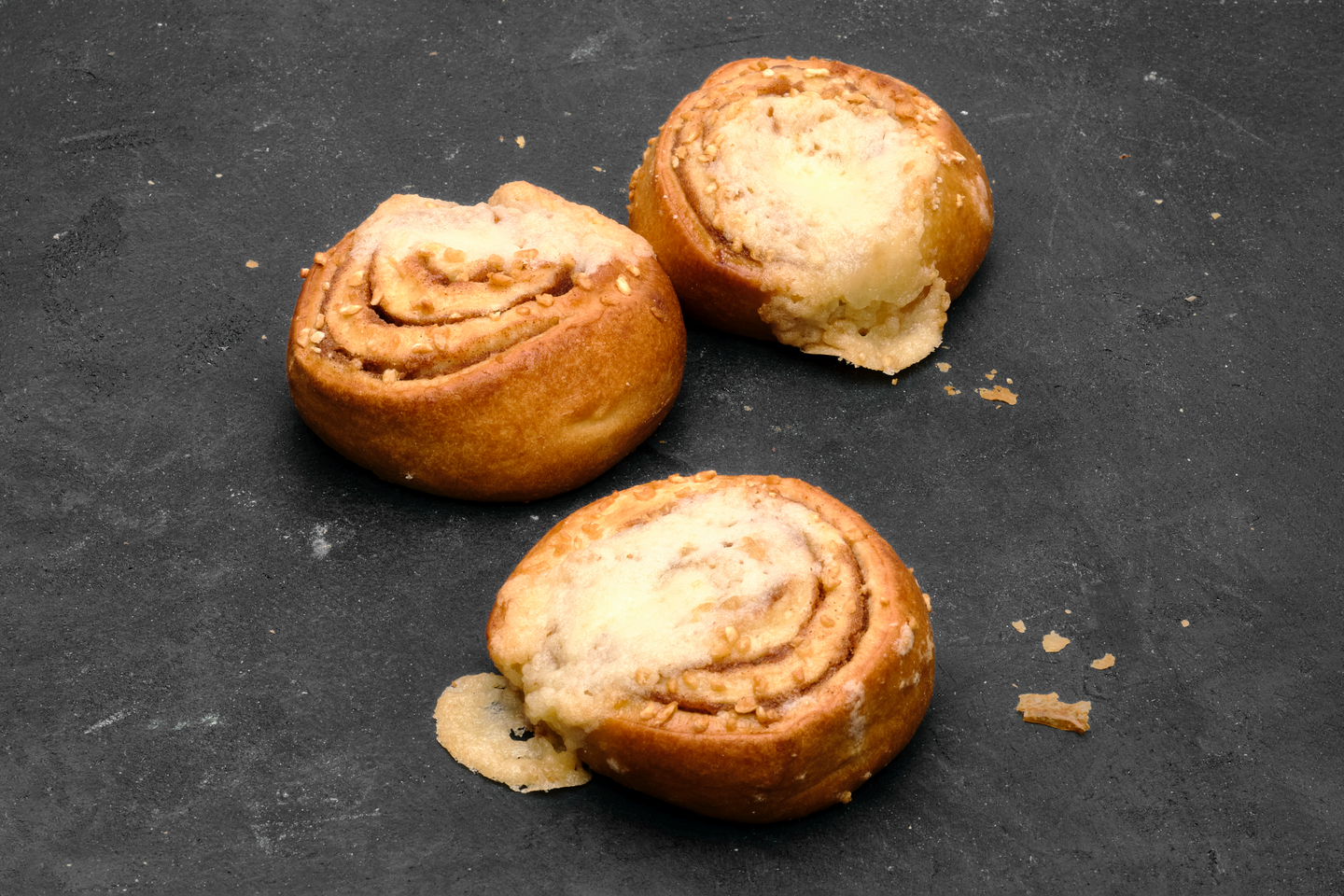 LaktoositonIhanan pehmeän kanelisen kierrepullan päältä löytyy runsas, suussasulava voisilmänappi. Herkullisen ulkonäön kruunaa krokanttiripote. Tätä syntisen herkullista pullaa on vaikea vastustaa! Paistettava.