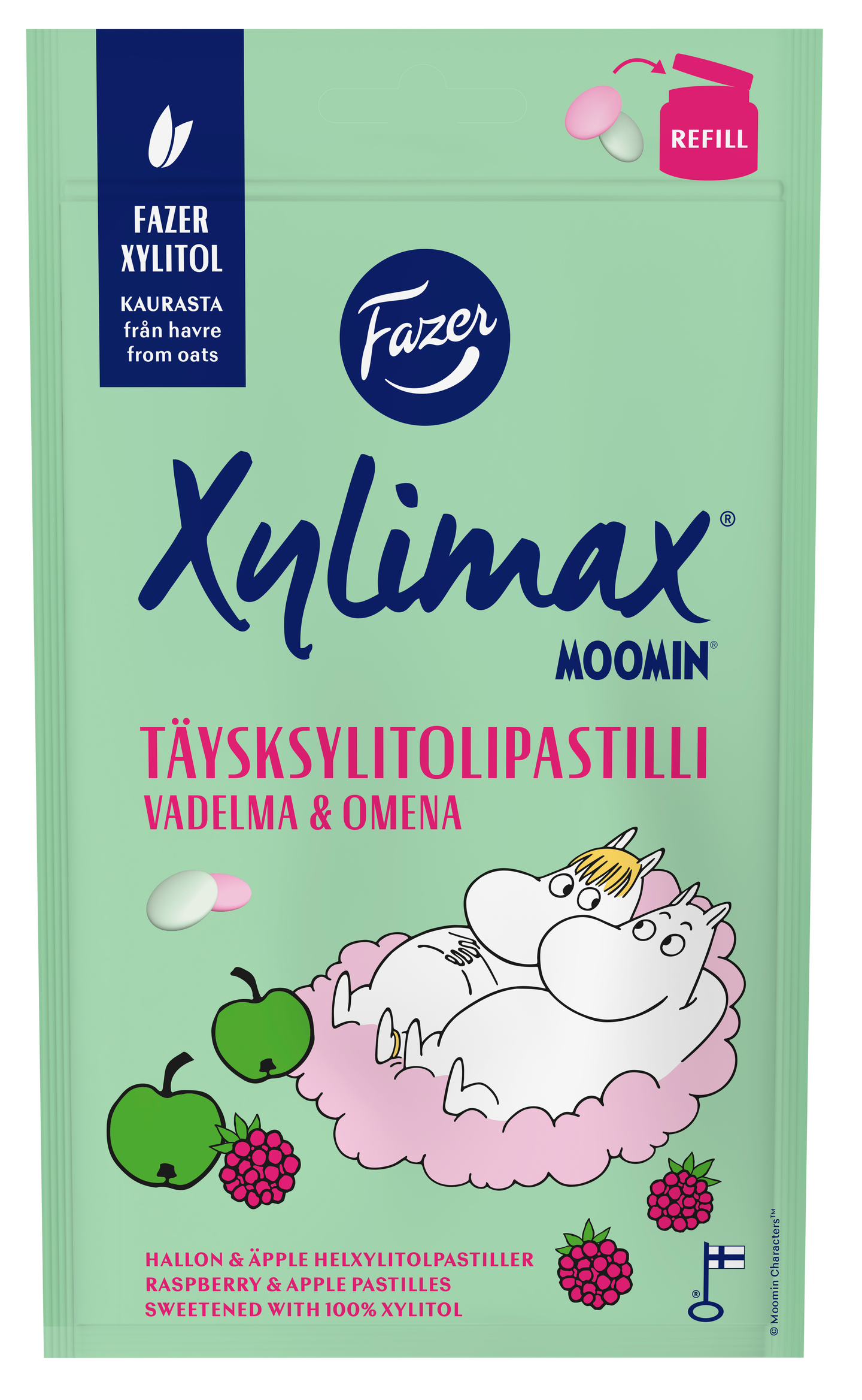 Fazer Xylimax Moomin vadelma ja omena täysksylitolipastillit 85g