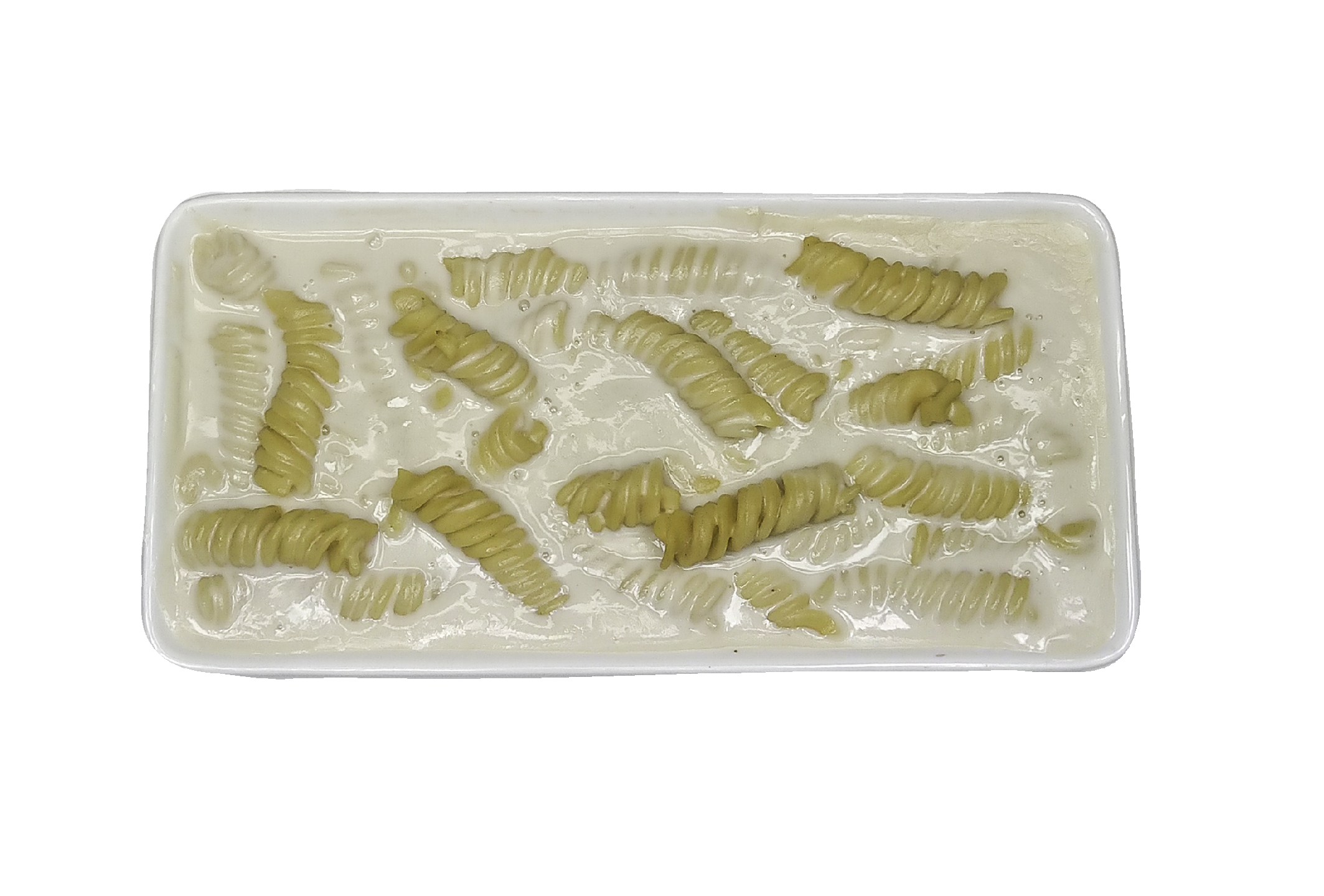 Vesi, gluteeniton kauravalmiste [kaurapohja (vesi, gluteeniton KAURA), rapsiöjy, emulgointiaine (E472e), stabilointiaine (E415), hapettumisestoaine (E307)], gluteeniton pasta (täysjyväriisi, keltainen maissi, valkoinen maissi, riisi, perunatärkkelys), rapsiöljy, muunnettu maissitärkkelys, jodioitu suola, sokeri.