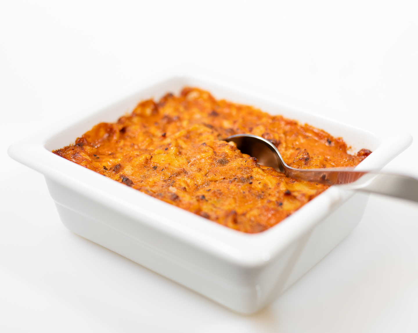 Vesi, suomalainen naudan jauheliha 11 % [naudanliha, vesi, perunakuitu, jodioitu suola, stabilointiaineet (E450, E451), psyllium, happamuudensäätöaine (E300)], laktoositon kasvirasvasekoite [rasvaton MAITO (Suomi), vesi, rapsiöljy, muunnettu maissi- ja tapiokatärkkelys, emulgointiaine (E472e), aromi, väri (E160a)], pasta (täysjyvädurumVEHNÄ), tomaattimurska, sipuli, VEHNÄjauho, porkkana, rapsiöljy, laktoositon VOI (Suomi), sokeri, suola, basilika, mustapippuri.
