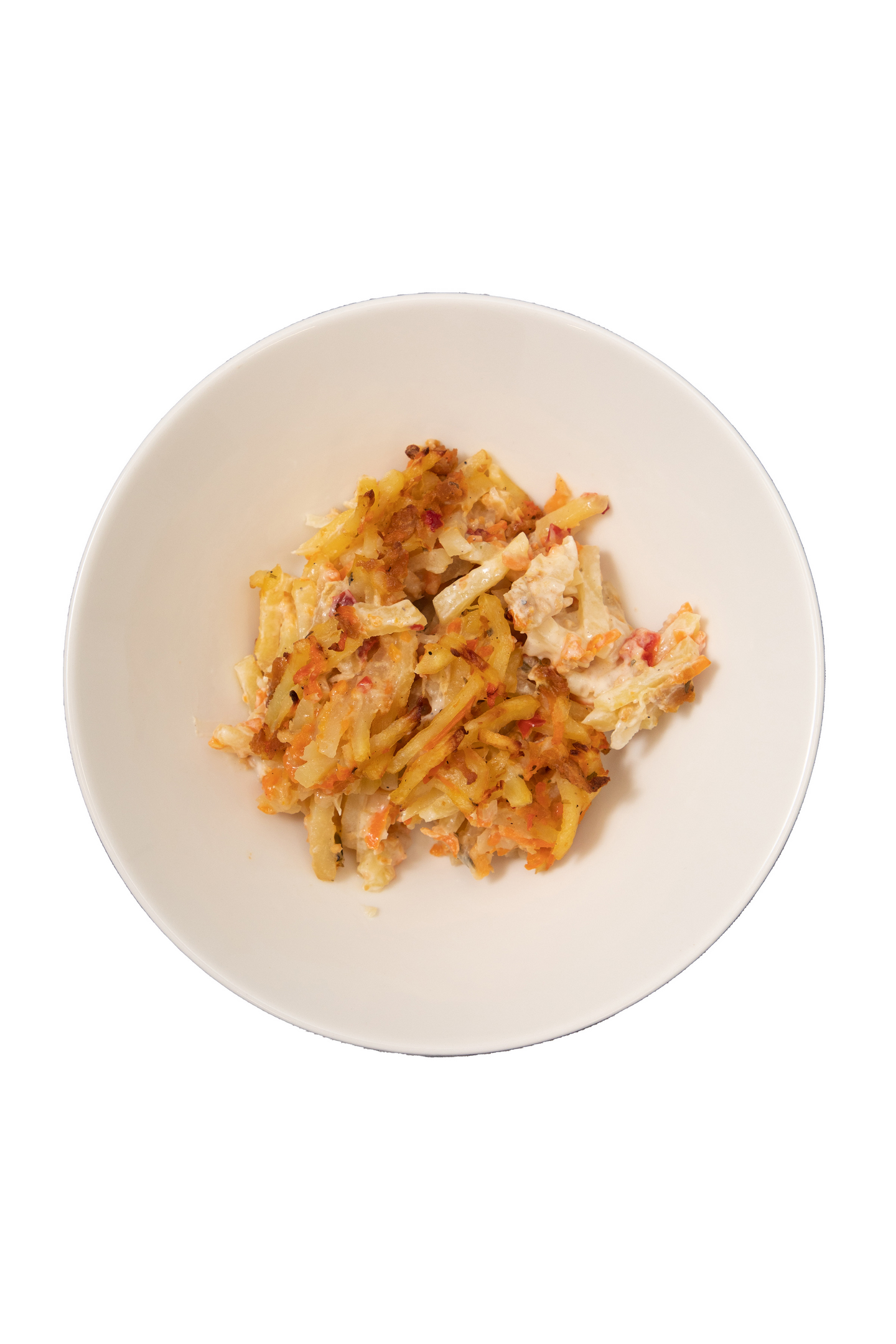 Peruna, laktoositon kasvirasvasekoite [rasvaton MAITO (Suomi), vesi, rapsiöljy, muunnettu maissi- ja tapiokatärkkelys, emulgointiaine (E472e), aromi, väri (E160a)], porkkana, seitan [VEHNÄGLUTEENI, vesi, sipuli, peruna, maissijauho, rapsiöljy, paprika, herkkusieni, soijakastike (vesi, SOIJAPROTEIINIhydrolysaatti, suola), jodioitu suola, tomaattipyree, porkkana, valkosipuli, chili, juustokumina, oregano], paprika, sipuli, purjosipuli, umami (suola, maltodekstriini, hiivauute, palmurasva, sipulijauhe, valkosipulijauhe, neilikka, voitatti, luontainen aromi, laakerinlehtijauhe), jodioitu suola, kasvisliemijauhe (suola, maltodekstriini, kasvisjauhe (sipuli, palsternakka, porkkana, purjosipuli), luontainen aromi], mustapippuri, rakuuna.