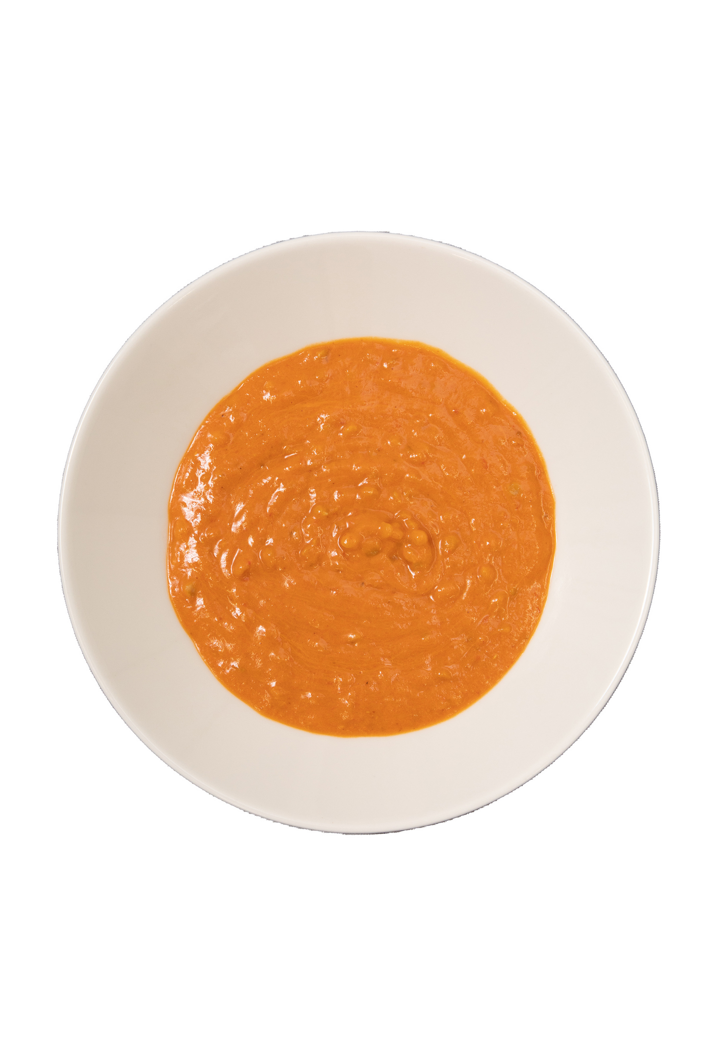 Gluteeniton kauravalmiste [kaurapohja (vesi, gluteeniton KAURA), rapsiöjy, emulgointiaine (E472e), stabilointiaine (E415), hapettumisestoaine (E307)], vesi, tomaattimurska, punainen linssi 8 %, paistettu sipuli [sipuli, kasviöljy (rypsi ja/tai auringonkukka)], rapsiöljy, tomaattipyree, sitruunamehu, kookoskerma (kookosuute, vesi), jodioitu suola, sokeri, muunnettu perunatärkkelys, valkosipulimurska, inkiväärirouhe, väkiviinaetikka, chilirouhe, juustokumina, sipulijauhe, valkosipulijauhe, kurkuma, korianteri, inkiväärijauhe, paprikajauhe, oregano, kumina, cayennepippuri, timjami, mustapippuri.