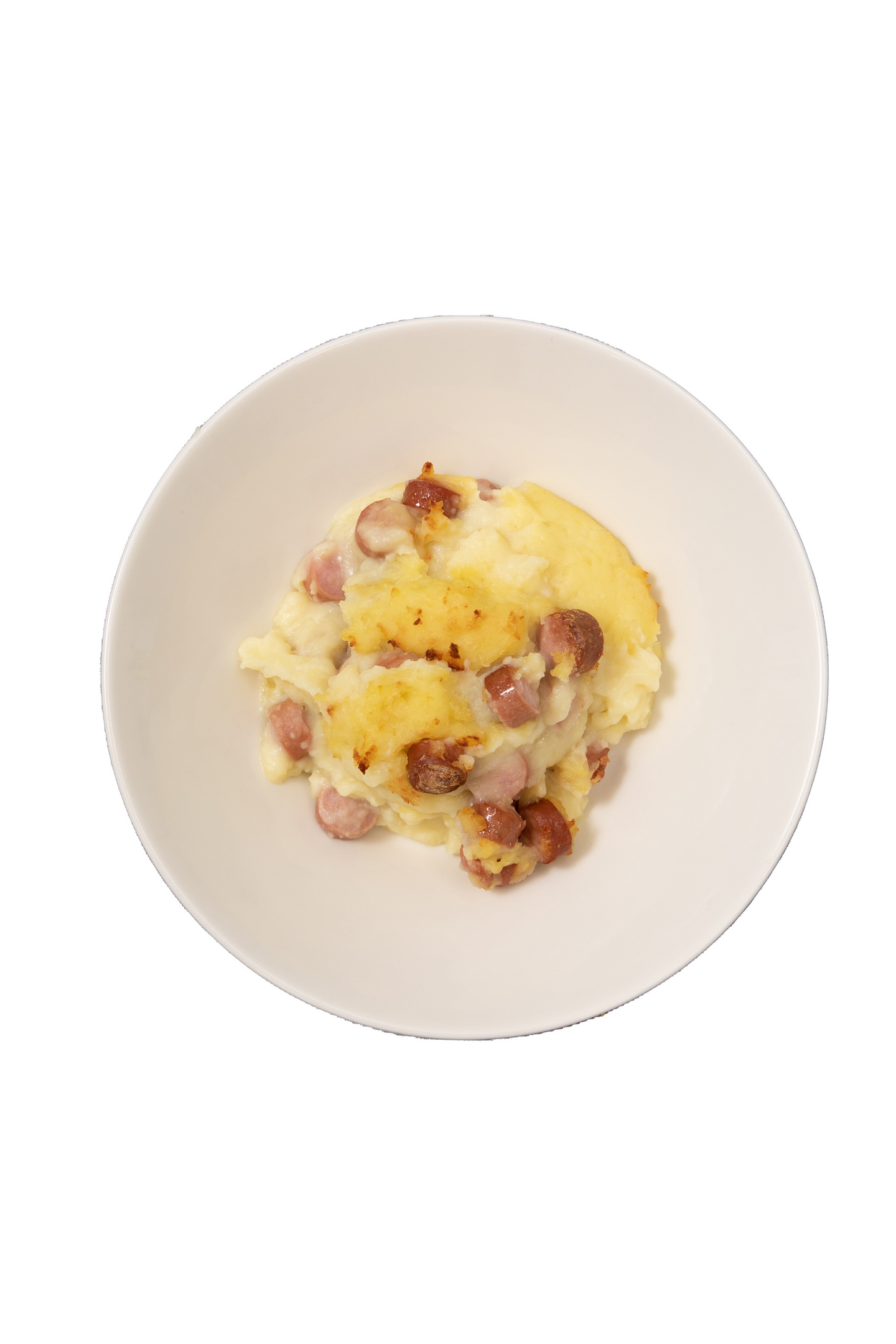 Peruna, nakki (15 %) [porsaanliha (Suomi), naudanliha (Suomi), vesi, merisuola, glukoosi, mausteet (musta- ja valkopippuri), aromit (mm. paprika, chili, korianteri, muskottipähkinä), hapettumisenestoaine (E300), säilöntäaine (E250)], vesi, laktoositon kasvirasvasekoite [rasvaton MAITO (Suomi), vesi, rapsiöljy, muunnettu maissi- ja tapiokatärkkelys, emulgointiaine (E472e), aromi, väri (E160a)], rypsiöljy, sipuli, suola.