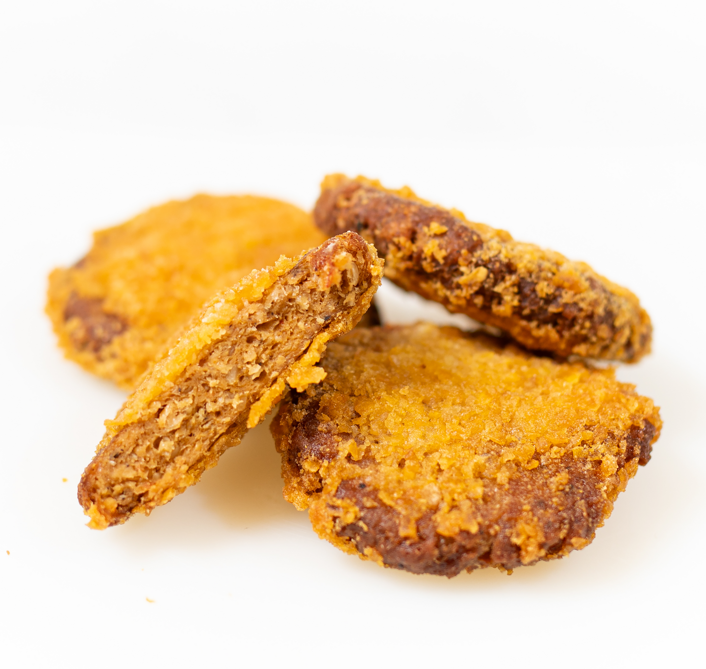Vesi, herneproteiini, rapsiöljy, paistettu sipuli [sipuli, kasviöljy (rypsi ja/tai auringonkukka)], porkkana, paprika, sakeuttamisaine (E461), sipulijauhe, mustapippuri, savupaprika, jodioitu suola, sitruskuitu, umami [suola, maltodekstriini, hiivauute, palmurasva, sipulijauhe, mausteet ja yrtit [mm. valkosipuli, laakerinlehti), voitatti, mausteuute], chipotle -chilipippuri. Panerointi [vesi, maissihiutale (maissi, sokeri, suola), muunnettu maissitärkkelys, perunajauho]