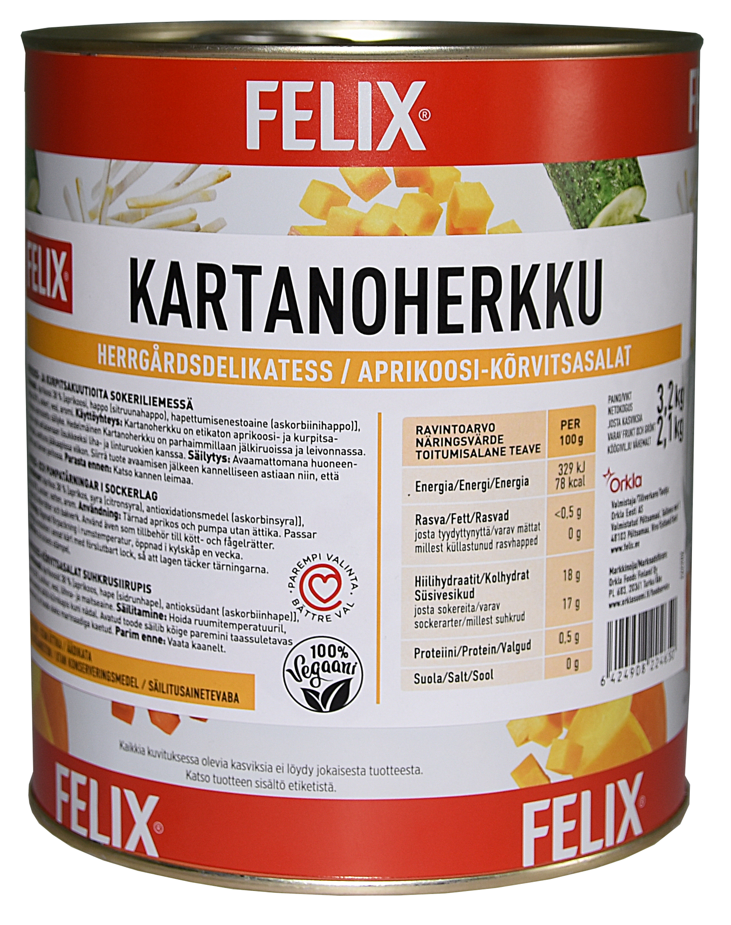 Felix kartanoherkku aprikoosi-kurpitsasalaatti etikaton 3,2kg/2,1kg