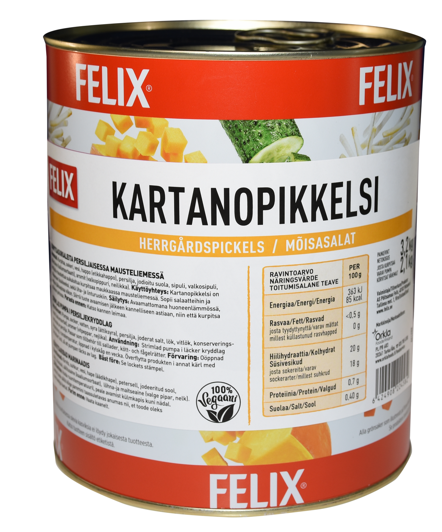 VegaaninenKartanopikkelsi on persiljalla maustettua suikaloitua kurpitsaa maukkaassa mausteliemessä. Se sopii salaatteihin, sellaisenaan lisukkeeksi sekä liha- ja linturuokiin.
