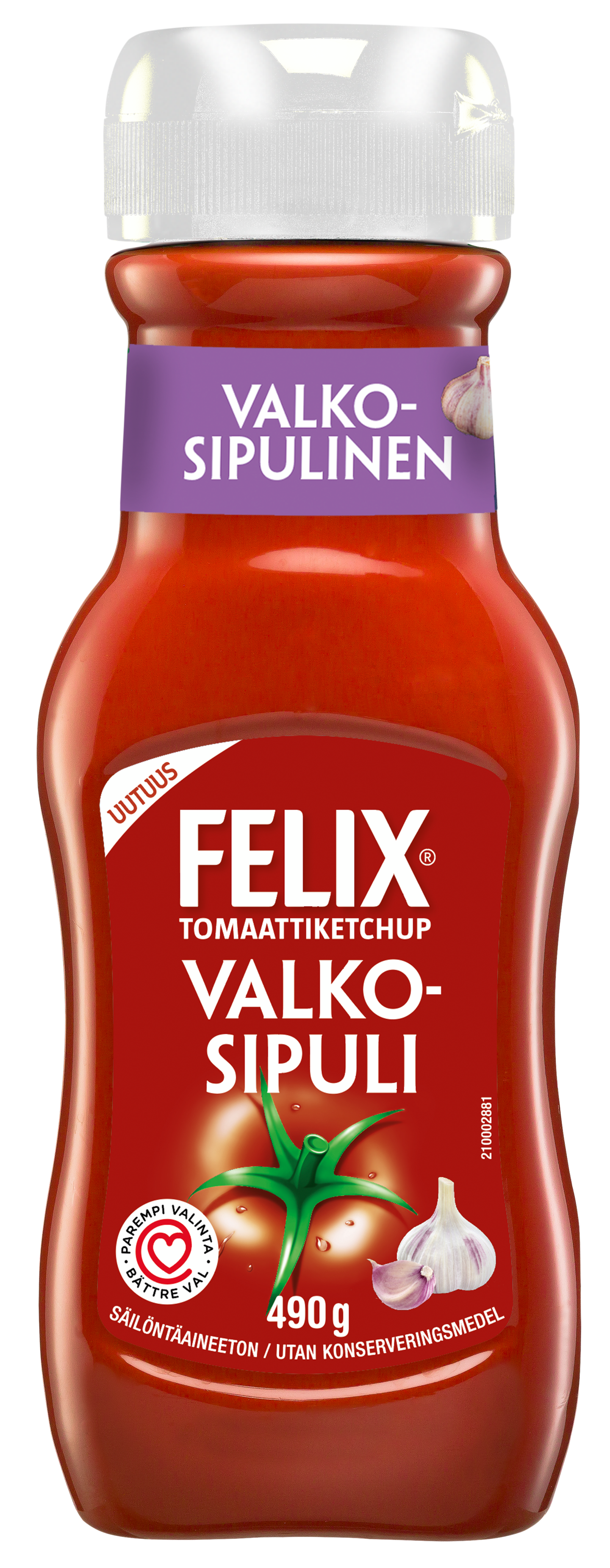 VegaaninenFelix® Valkosipuli Ketchup 490 g on herkullinen uutuus Felix-ketsuppivalikoimaan. Valkosipuliketsuppi on valmistettu mehevistä, auringon kypsyttämistä tomaateista sekä valkosipulista. Maku on yhtä aikaa tomaattinen ja valkosipulinen. Tämä on uudenlainen vaihtoehto niille, jotka kaipaavat erilaista makuelämystä, myös ketsupissa. Kokeile pastaruokiin, dippailuun tai maustamiseen. Tuote on säilöntäaineeton ja siinä on terveellisemmästä vaihtoehdosta kertova Sydänmerkki. Lue lisää felix.fi. Felix - herkkuja ruokapöytään®.
