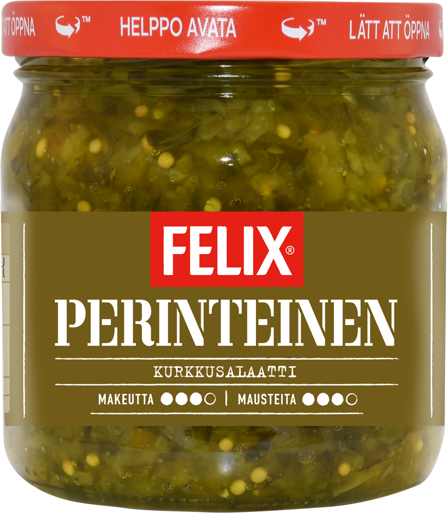 VegaaninenPerinteet kunniaan ja kurkkusalaattia pöytään. Felix® Perinteinen kurkkusalaatti maistuu kaikille ja se sopii sellaisenaan erinomaiseksi lisukkeeksi ruuan oheen. Pieni purkkikoko on sopiva pienemmillekin talouksille ja tulee käytettyä nopeasti loppuun. Purkissa on lisäksi helppo avata -kansi, joka on käytössä kätevä. Tuote sopii vegaanista ruokavaliota noudattavalle. Felix - herkkuja ruokapöytään®.