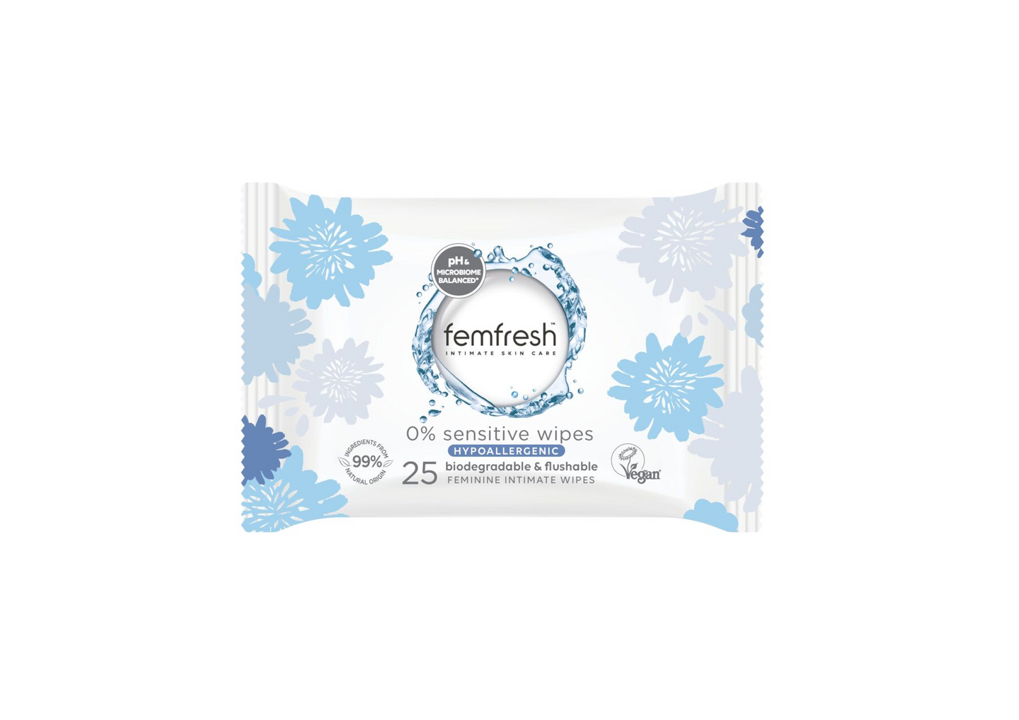 Femfresh 0% Sensitive Wipes 25 kpl -kosteuspyyhkeet intiimialueelle