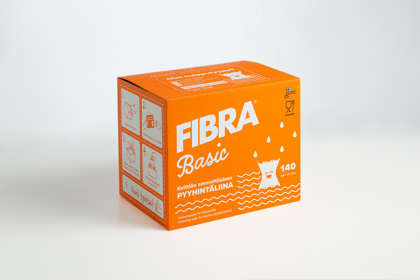 Fibra® on tutkitusti elintarviketurvallinen liina. Polyesterista ja viskoosista valmistettu liina on kätevä, hygieeninen ja edullinen ammattikeittiön arkeen. Polyesterin lisääminen materiaaliin tuo lisää kestävyyttä. Näin pyyhe toimii vaativillakin pinnoilla.