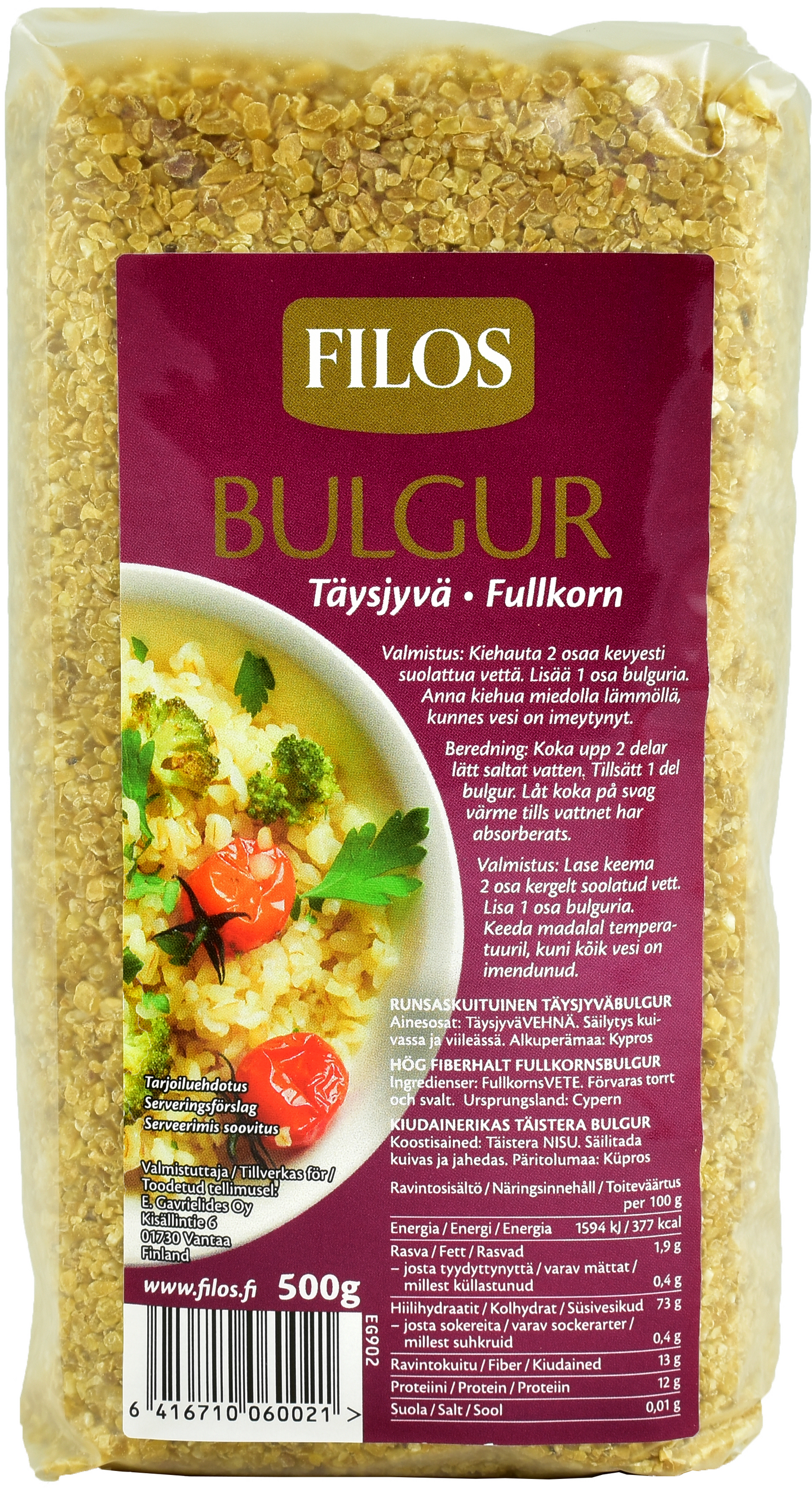 Bulgur on vehnästä valmistettuja suurimoita. Bulgur sisältää runsaasti mineraaleja ja vitamiineja, joten se sopii terveellistä ruokavaliota noudattaville. Käytä riisin tai pastan tapaan tai vaikkapa salaatissa. Saat lisää makua bulguriin lisäämällä keitinveteen puristettua sitruunanmehua tai mausteita.