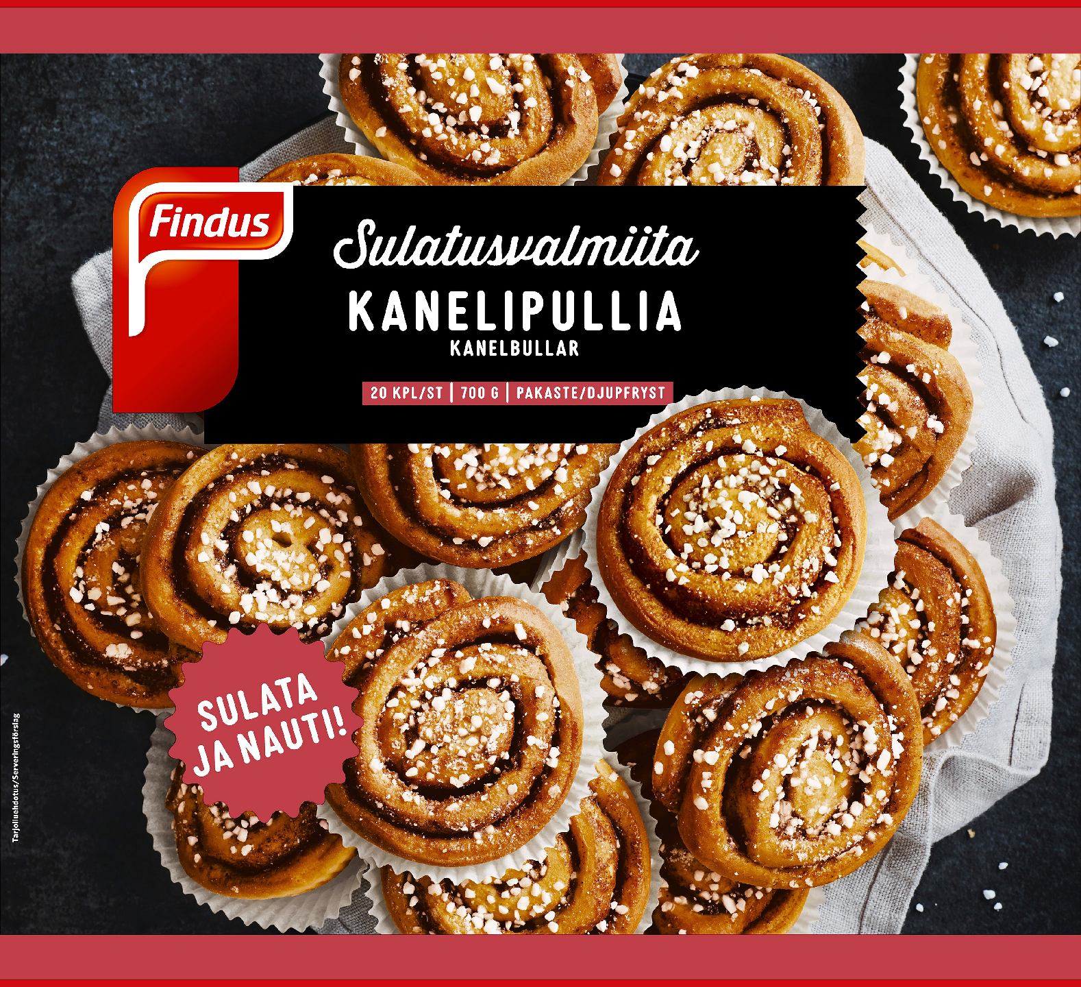 VegaaninenFinduksen pullat ovat valmiiksi paistettuja. Riittää, kun sulatat ne huoneenlämmössä, mikrossa tai uunissa. Voit nauttia vastaleivotun tuoksusta ja mausta milloin haluat! Findus Kanelipullissa on perinteinen, mehevä kanelitäyte. Isosta pussista riittää herkullisia Kanelipullia isommallekin porukalle.