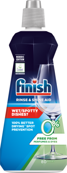 Optimaaliseen konepesuun tarvitaan sekä konetiskiainetta että huuhtelukirkastetta. Finish Shine & Dry huuhtelukirkaste poistaa lian ja vesitahrat sekä tekee astioista säihkyvän kirkkaita! Finish kuuhtelukirkaste toimii viimeisen huuhtelujakson aikana ja irrottaa kaikki ruoka- ja pesuainejäämät. Sen ansiosta voit ottaa astiat koneesta kirkkaina ja kuivina.