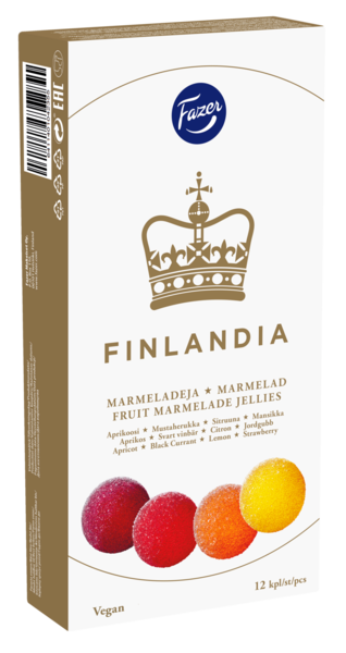 VegaaninenFinlandia on ihana suomalainen suosikkimarmeladi, jonka perinteet ulottuvat yli sadan vuoden päähän. Finlandia-rasiassa on neljä raikkaan hedelmäistä makua: aprikoosi, mustaherukka, sitruuna ja mansikka. Finlandia-marmeladi sopii monille, sillä se ei sisällä gluteenia, liivatetta eikä laktoosia. Finlandia on maistuva sesonkiherkku ja joulukauden odotettu tuliainen. Kauniit marmeladikuulat tuovat väriä juhlakattauksiin.