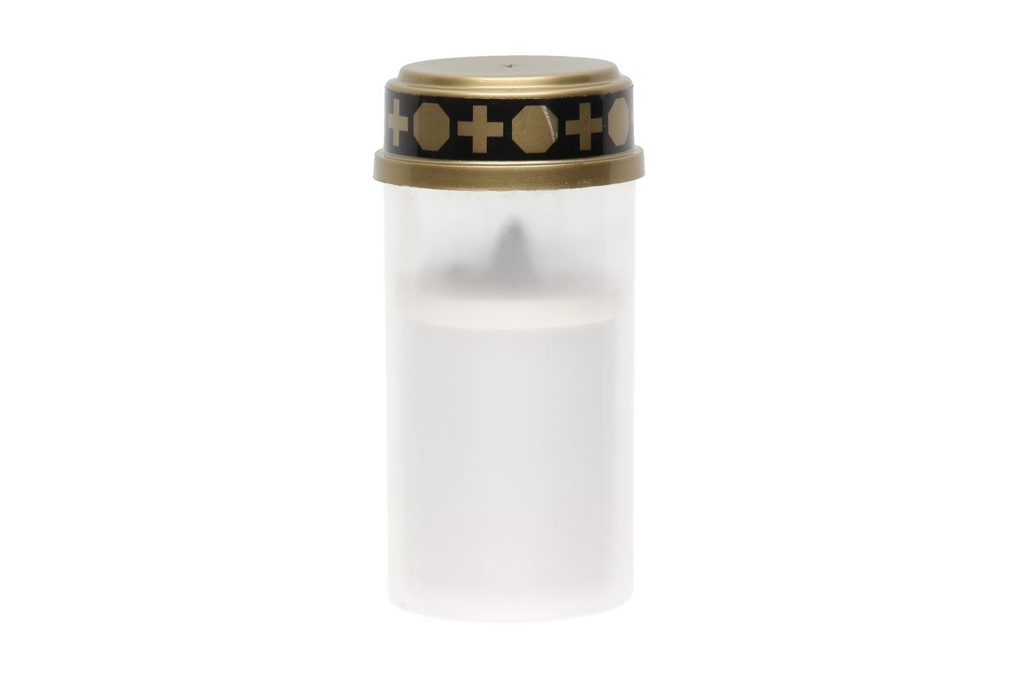LED-hautakynttilä palaa läheisten muistoksi tuulisellakin säällä. Paloaika noin 40 vrk paristoista ja olosuhteista riippuen. Materiaali: polypropeeni, polyeteeni.