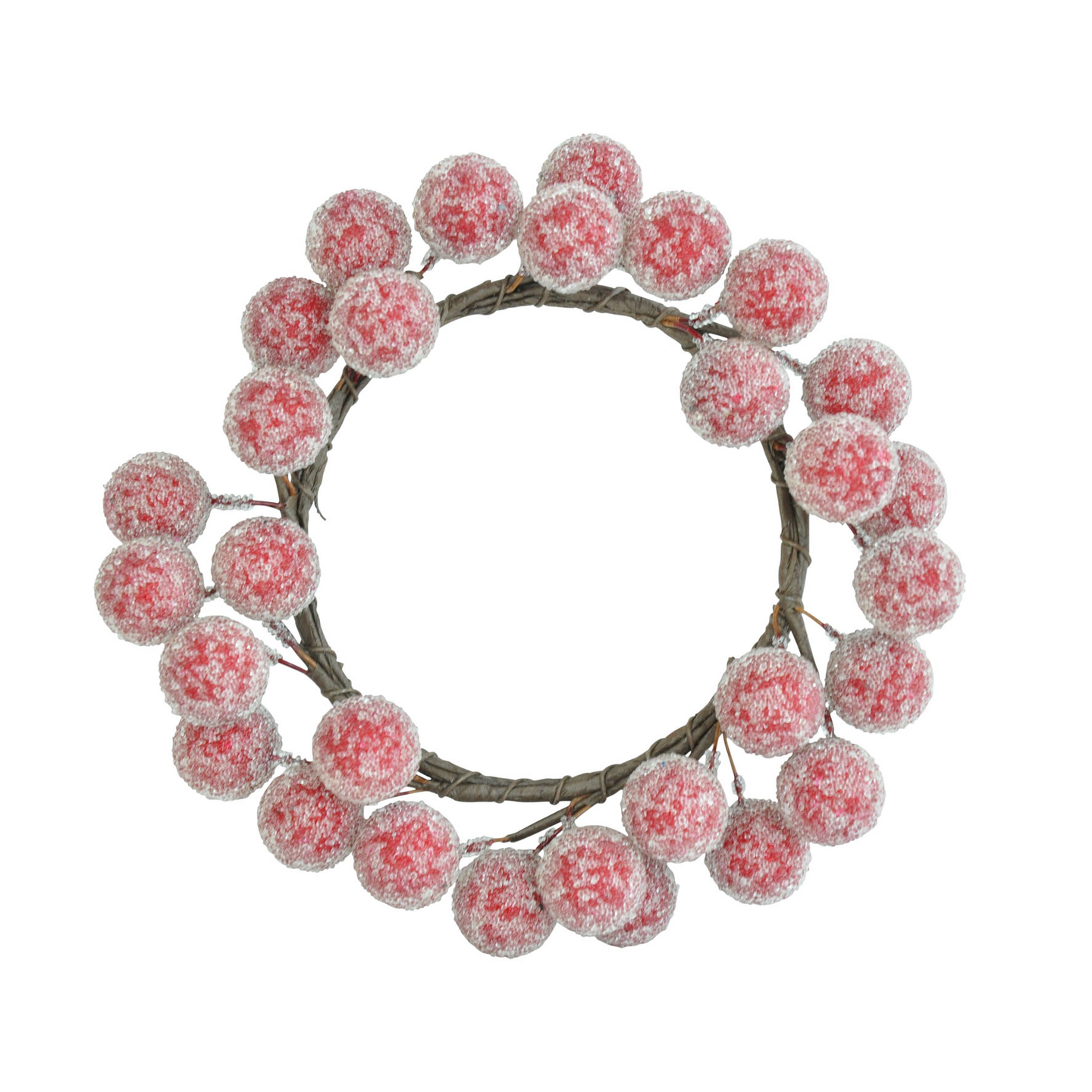 Punainen helmikranssi halkaisija 8 cm, jossa huurrekoristeinen pinta.