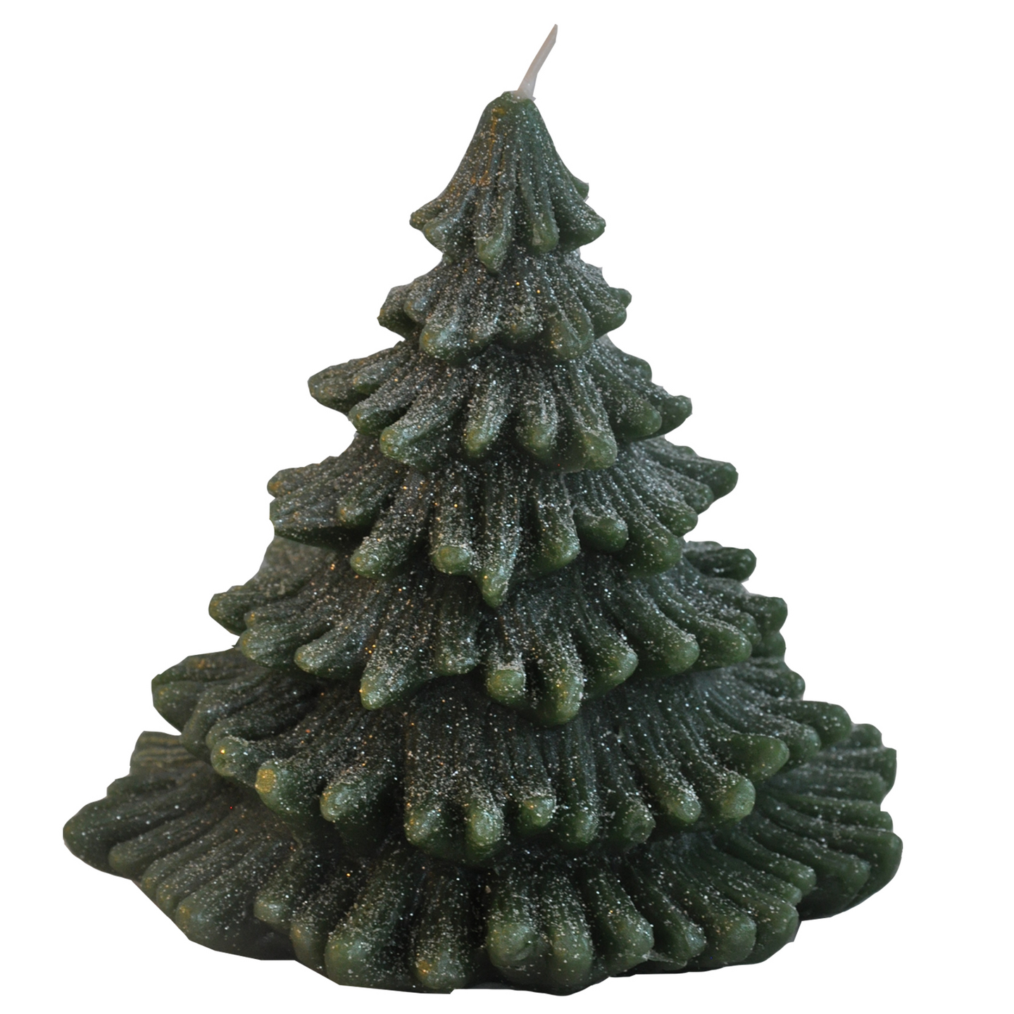 Vihreä joulukuusi kynttilä sellofaanipaketissa.