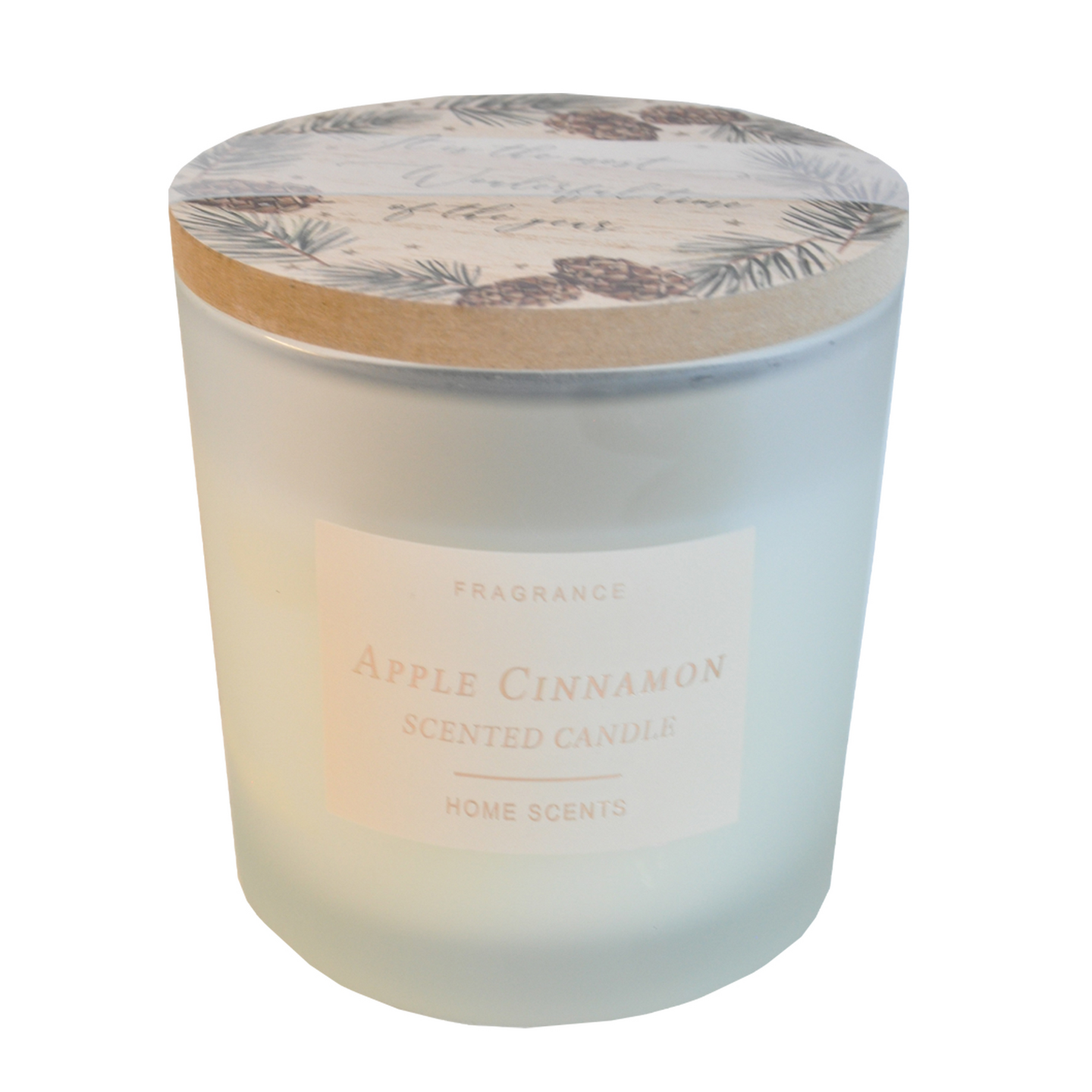 Jouluinen lasikynttilä kannella, jossa lumoava tuoksu Omena-Kaneli.