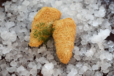 58 % PUNAKALAfilee (Sebastes norvegicus/mentella), VEHNÄJAUHO, vesi, rypsiöljy, VEHNÄTÄRKKELYS, suola, hiiva, stabilointiaine (E461), stabilointiaine (E464), ravintokuitu (VEHNÄ), valkosipulijauhe, sipulijauhe, valkopippuri, liperi, sitruunaruoho, tilli