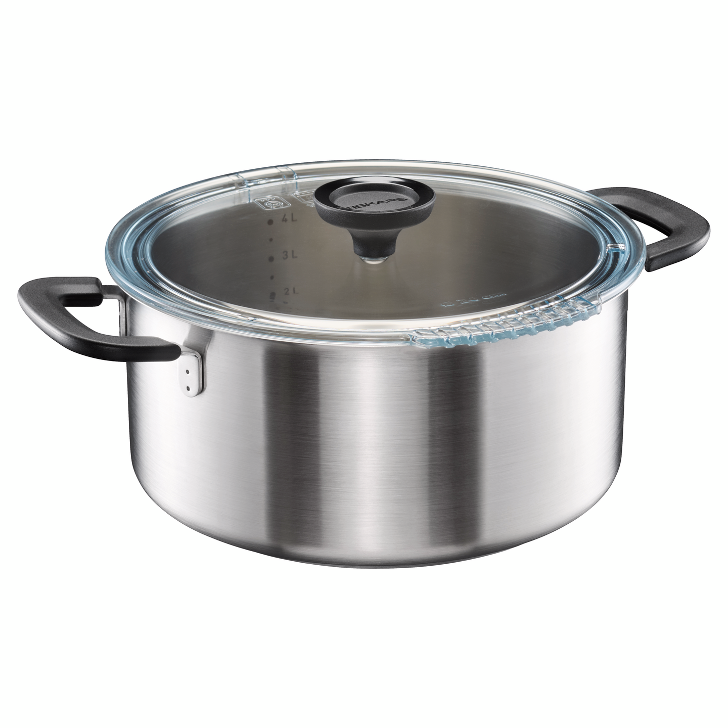 Fiskars Functional Form kattila on täydellinen valinta arjen ruoanlaittoon, erityisesti keittojen ja patojen valmistukseen sekä riisin tai pastan keittämiseen. Kattilan runko on valmistettu kestävästä, 90 %:sti kierrätetystä ruostumattomasta teräksestä, ja se sopii käytettäväksi kaikilla liesillä - myös induktiolla. Kestävä ja tarttumaton keraaminen Ceratec™ -pinnoite on helppo puhdistaa ja kestää konepesun. Functional Form sarjan kattiloissa on ruoanvalmistusta helpottava mitta-asteikko sisäpuolella ja käytännöllisesti suunniteltu lasikansi. Lasikansi ehkäisee ylikiehumista, ja siinä on kaato-ominaisuus helpottamaan veden poiskaatoa. Kuumuudenkestävä 270 ºC asteeseen saakka. Uuninkestävä 150 ºC asteeseen saakka, mikä mahdollistaa kattilan hyödyntämisen saumattomasti myös uunikypsennystä vaativissa ruoissa ja resepteissä. Valmistettu Suomessa (ISO 14001) ympäristösertifioidulla tehtaallamme.