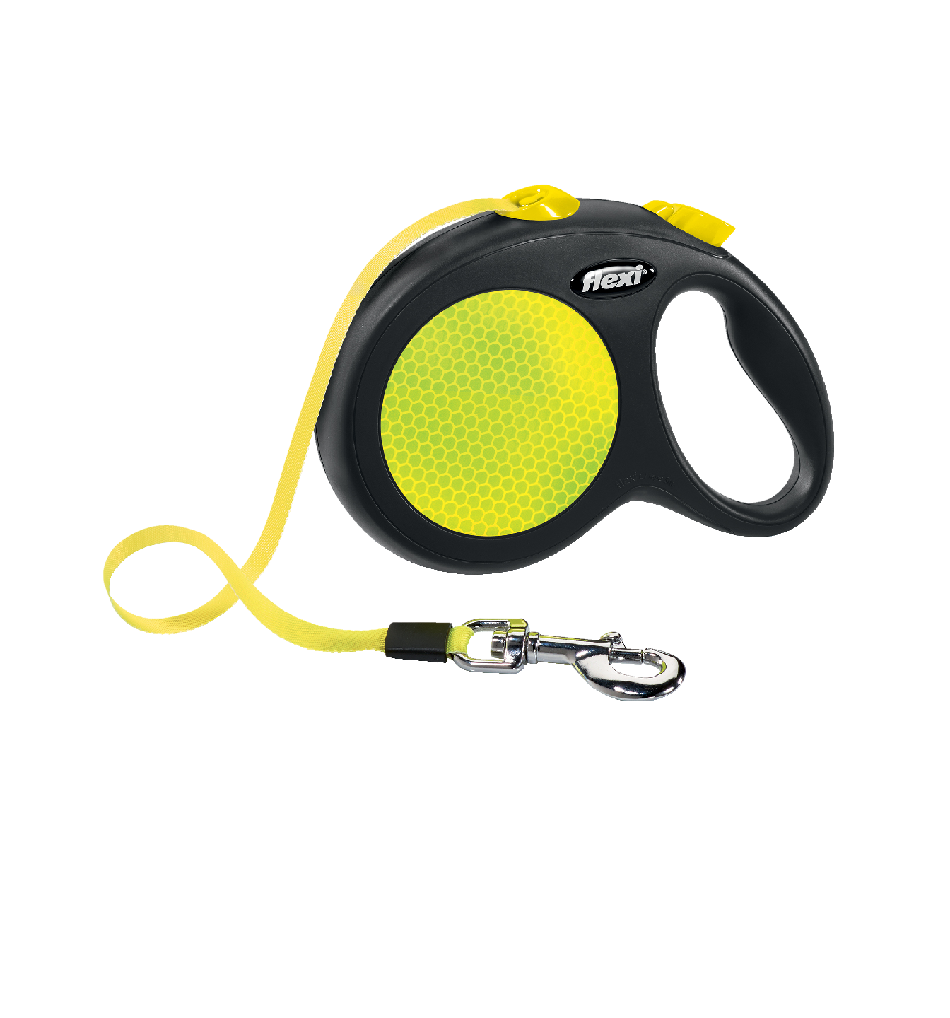 Flexi Neon Reflect -taluttimessa on uusi jarrumekanismi, joka toimii nopeasti ja varmasti - juuri silloin kuin sen pitääkin. Innovatiivinen nauhanohjuri huolehtii, ettei hihna jumitu ja aiheuta kiusallisia tilanteita. Taluttimen sivuissa on heijastimet. Neonkeltainen nauha erottuu hyvin pimeässä kaukaakin. Painoraja 50 kg