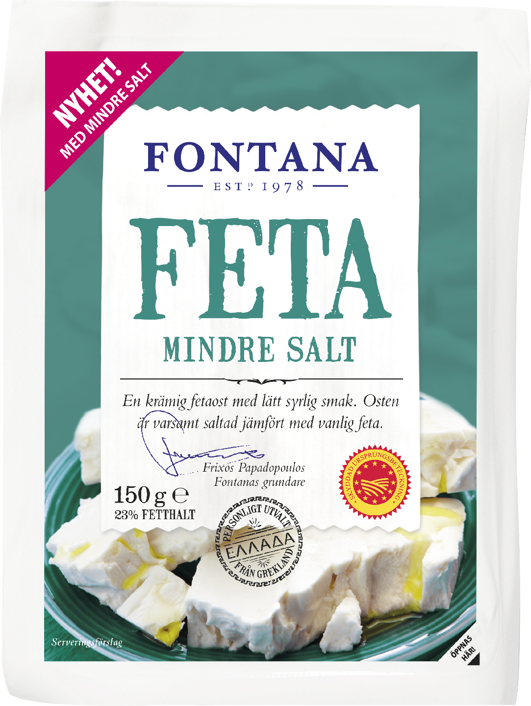 Aito kreikkalainen feta vähäsuolaisempana. Laadukkaasti käsintehty fetajuusto kreikkalaisten perinteiden mukaisesti lampaan- ja vuohenmaidosta. 50% vähemmän suolaa. Suojattu alkuperänimitys.