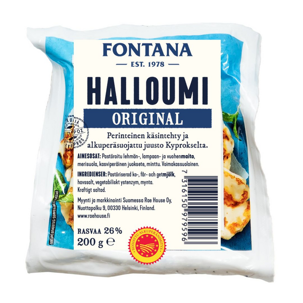 Alkuperässuojattu, aito kyproslainen Halloumi. Valmistettu lehmän-, lampaan- ja vuohenmaidosta. Laadukkaasti käsintehty kyproslaisten perinteiden mukaisesti. Sopii erinomaisesti paistettavaksi, grillattavaksi tai sellaisenaan nautittavaksi.