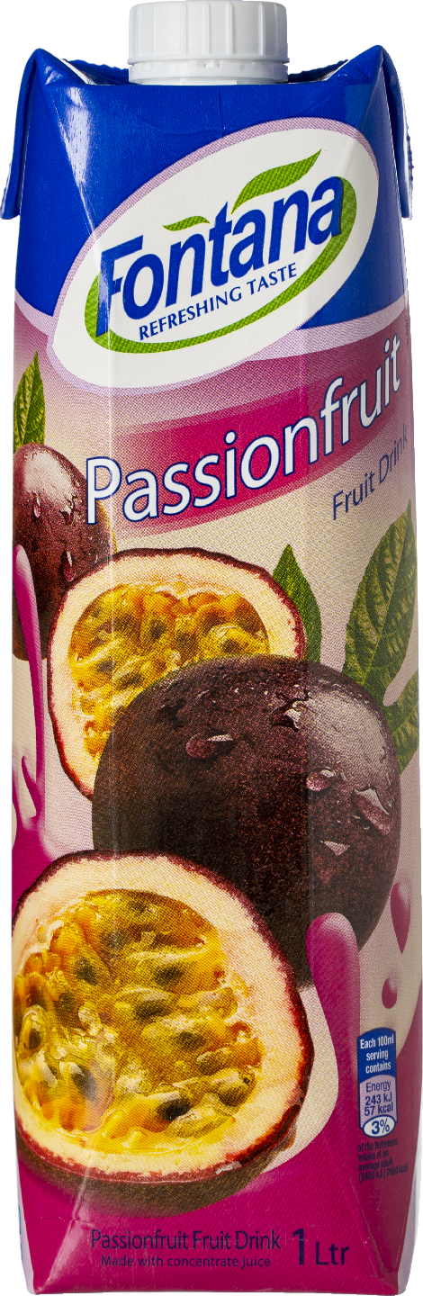 Vesi, passionhedelmätäysmehu valmistettu passionhedelmätäysmehutiivisteestä (19%), sokeri, stabilointiaine (pektiini), antioksidantti: askorbiinihappo, aromit.