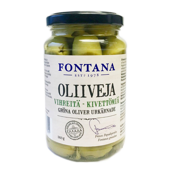 Fontana vihreitä kivettömiä oliiveja 360g/180g