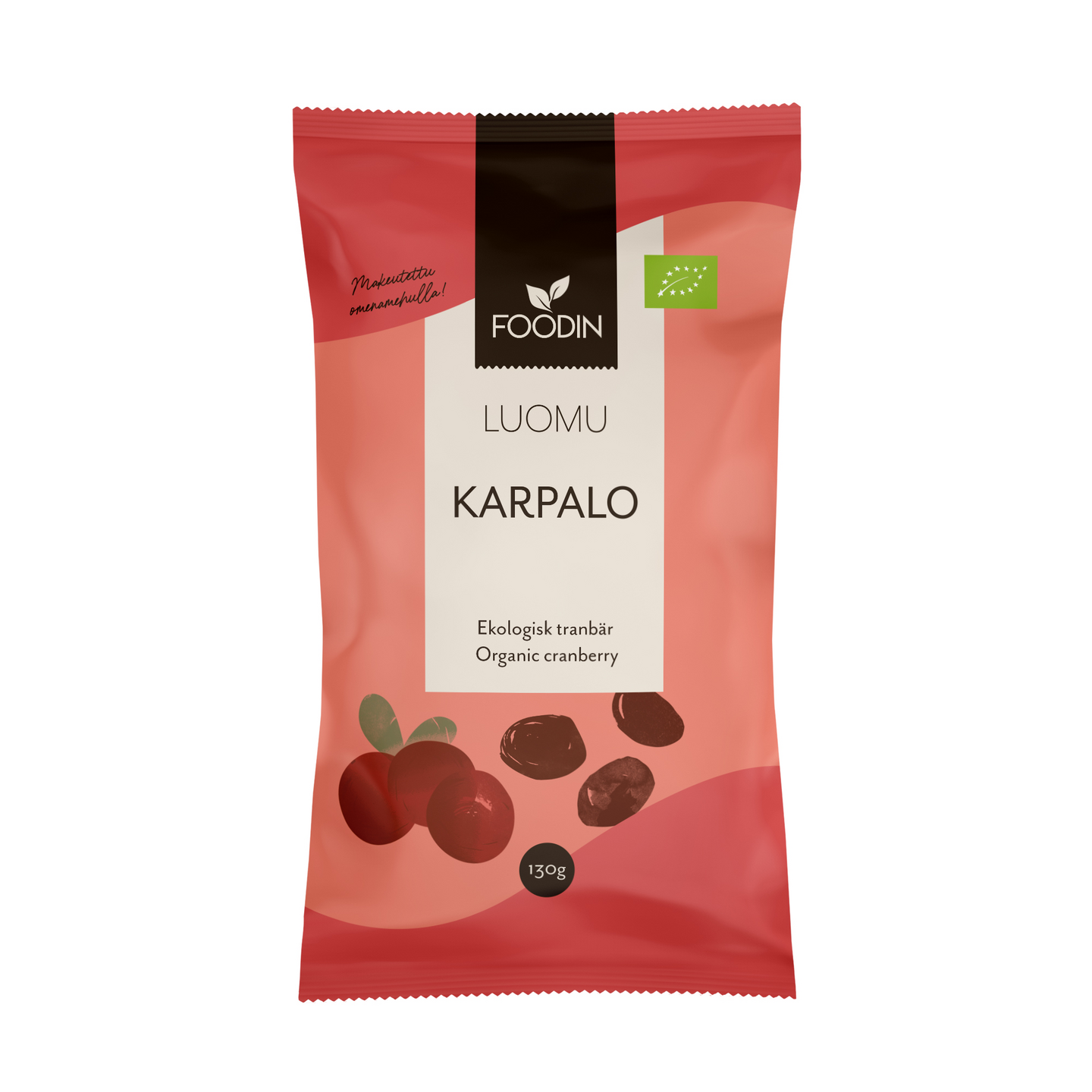 Foodinin herkullisen pehmeät ja makeat kuivatut karpalot ovat makeuttettu luomuomenamehulla ja sisältävät runsaasti C-vitamiinia. Karpalot sopivat erinomaisesti naposteltavaksi sellaisenaan, jogurtin ja myslin joukkoon tai salaattiin.