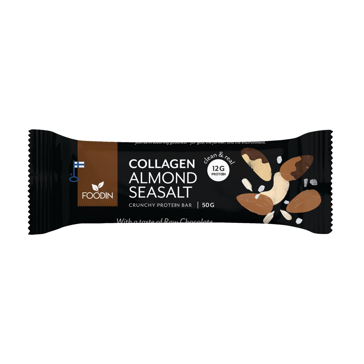 Foodin manteli-merisuola kollageeniproteiinipatukka 50 g