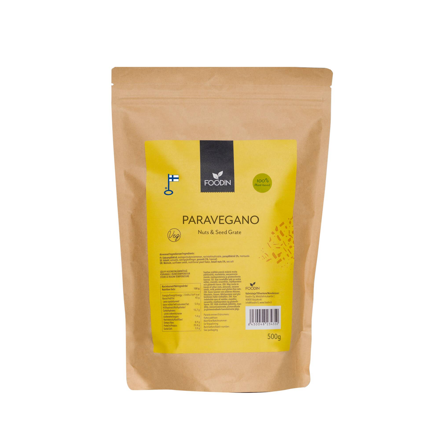 GluteenitonHerkullinen ja monikäyttöinen Grana Vegano on 100 % kasvipohjainen vaihtoehto perinteiselle kypsytetylle juustolle. Vaajakoskella vain viidestä raaka-aineesta valmistettu raaste saa suolaisen ja juustomaisen makunsa pähkinöistä, siemenistä, ravintohiivahiutaleista ja merisuolasta.